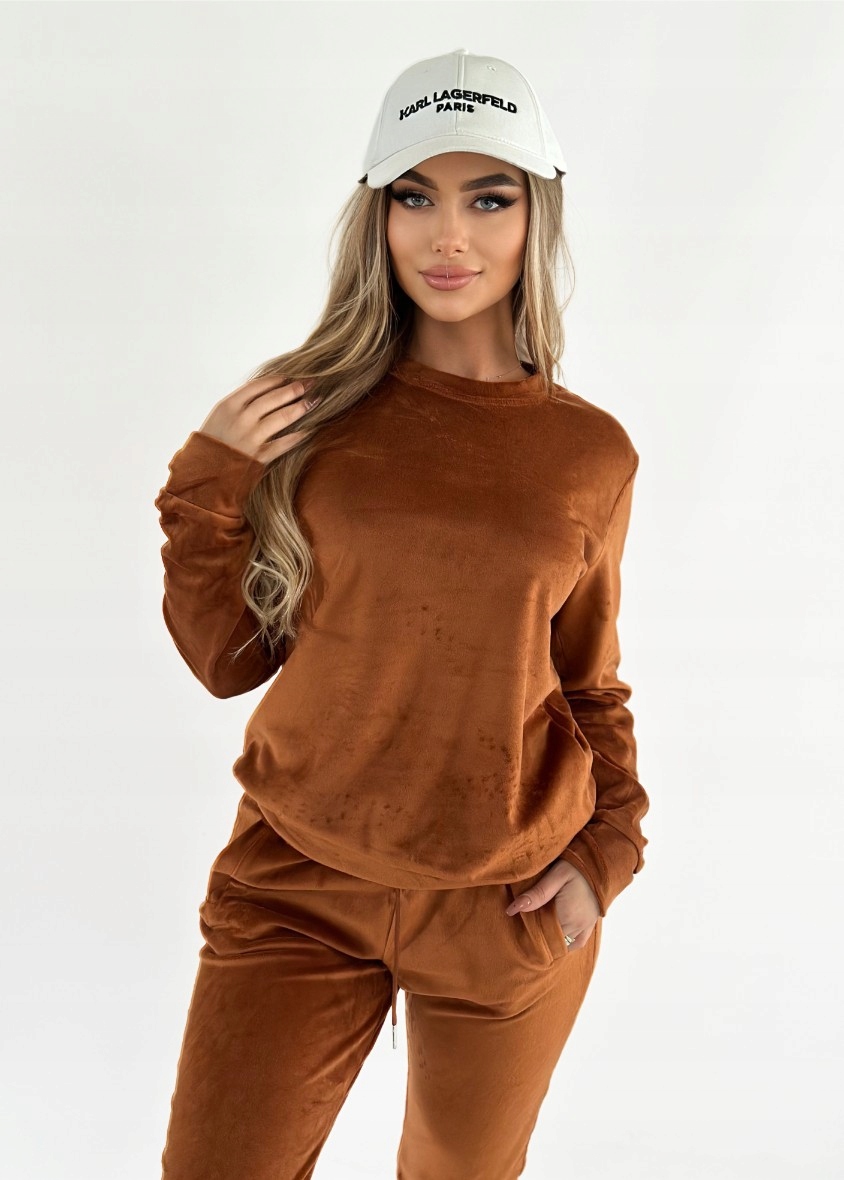 KOMPLET WELUROWY DAMSKI BRĄZOWY BEZ KAPTURA - CIEPŁY