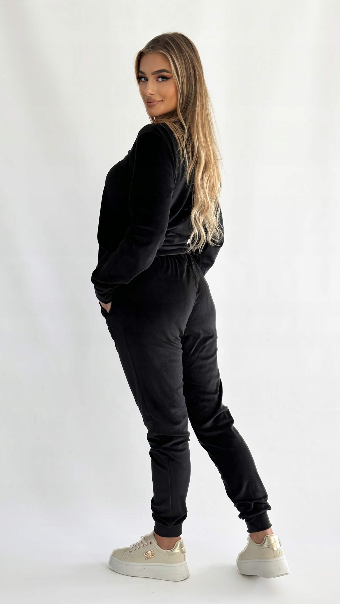 KOMPLET WELUROWY DAMSKI CZARNY BEZ KAPTURA - CIEPŁY