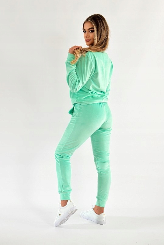 KOMPLET WELUROWY DAMSKI MIĘTOWY BEZ KAPTURA - CIEPŁY