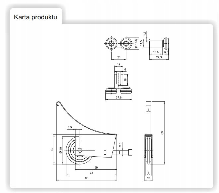 KOMPLET WÓZKÓW DO DRZWI PRZESUWNYCH GÓRNY SYMETRYCZNY ŁOŻYSKOWA 89 MM AMIX