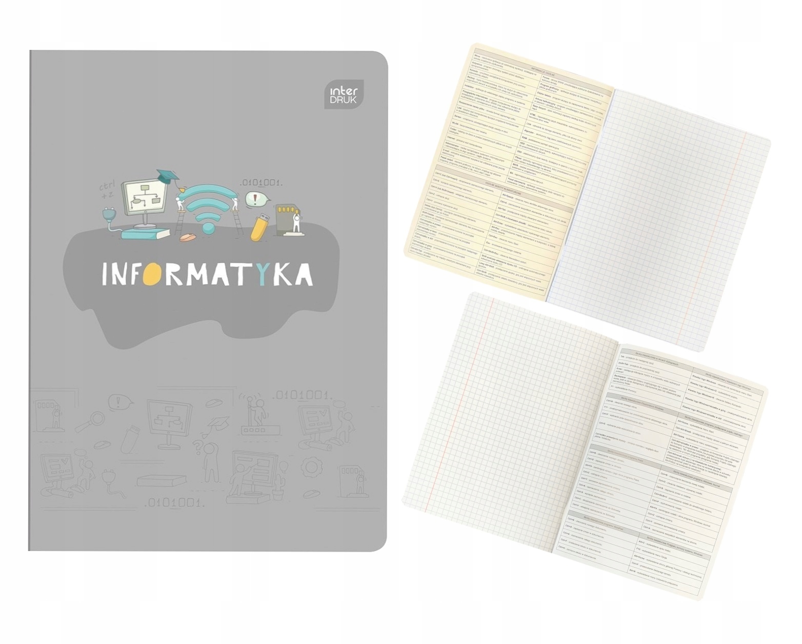 - Шпаргалки: внутрішні обкладинки містять шпаргалки, підготовлені експертами для розміщення найважливішої інформації на 2 сторінках. Завдяки цьому вони завжди під рукою. В історії ви знайдете найважливіші дати з історії Польщі, в хімії таблицю Менделєєва, а англійською мовою, серед іншого: базове відмінювання неправильних дієслів.