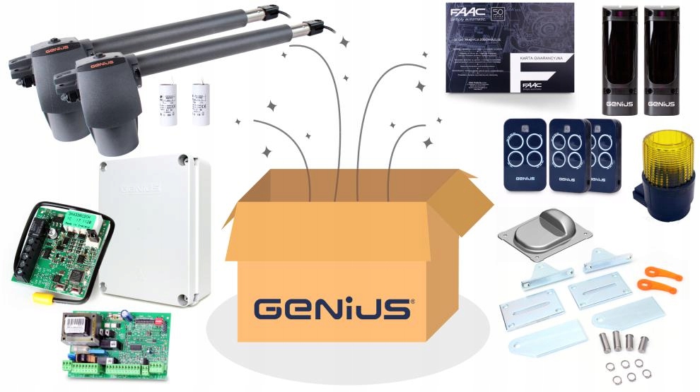 - Пристрій керування GENIUS BRAIN JA 592 призначений для керування приводами розпашних воріт, що працюють від мережі змінного струму 230 В.