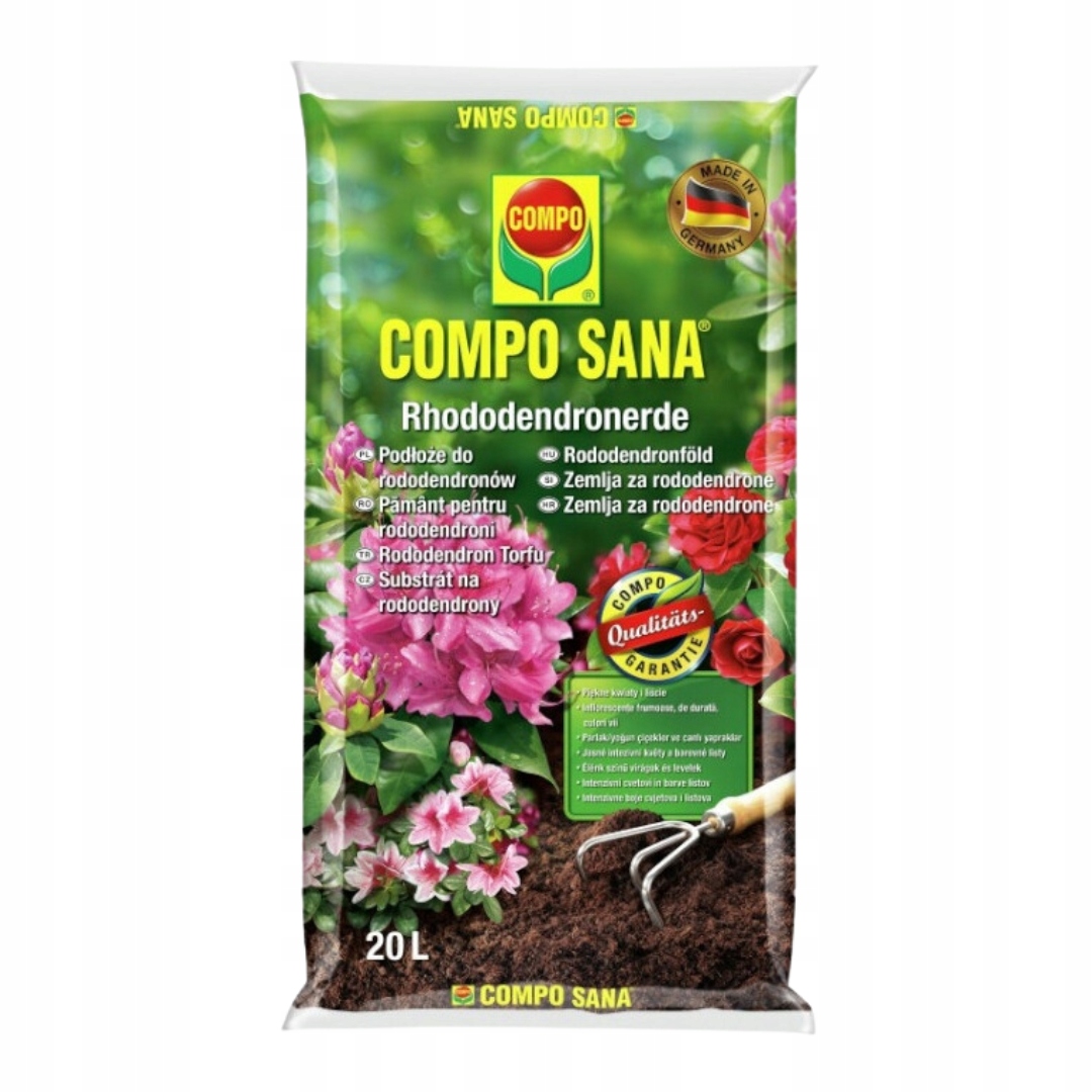 Субстрат Compo Sana для рододендронів був розроблений спеціально для ацидофільних рослин, таких як рододендрони, азалії та інші рослини, які віддають перевагу кислому ґрунту. Завдяки спеціалізованій суміші інгредієнтів, включаючи морські птахи Гуано, земля забезпечує адекватні умови для росту та цвітіння цих рослин.