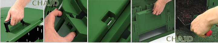 завдяки двом закриті отвори заслінки на дні компостера - фото внизу