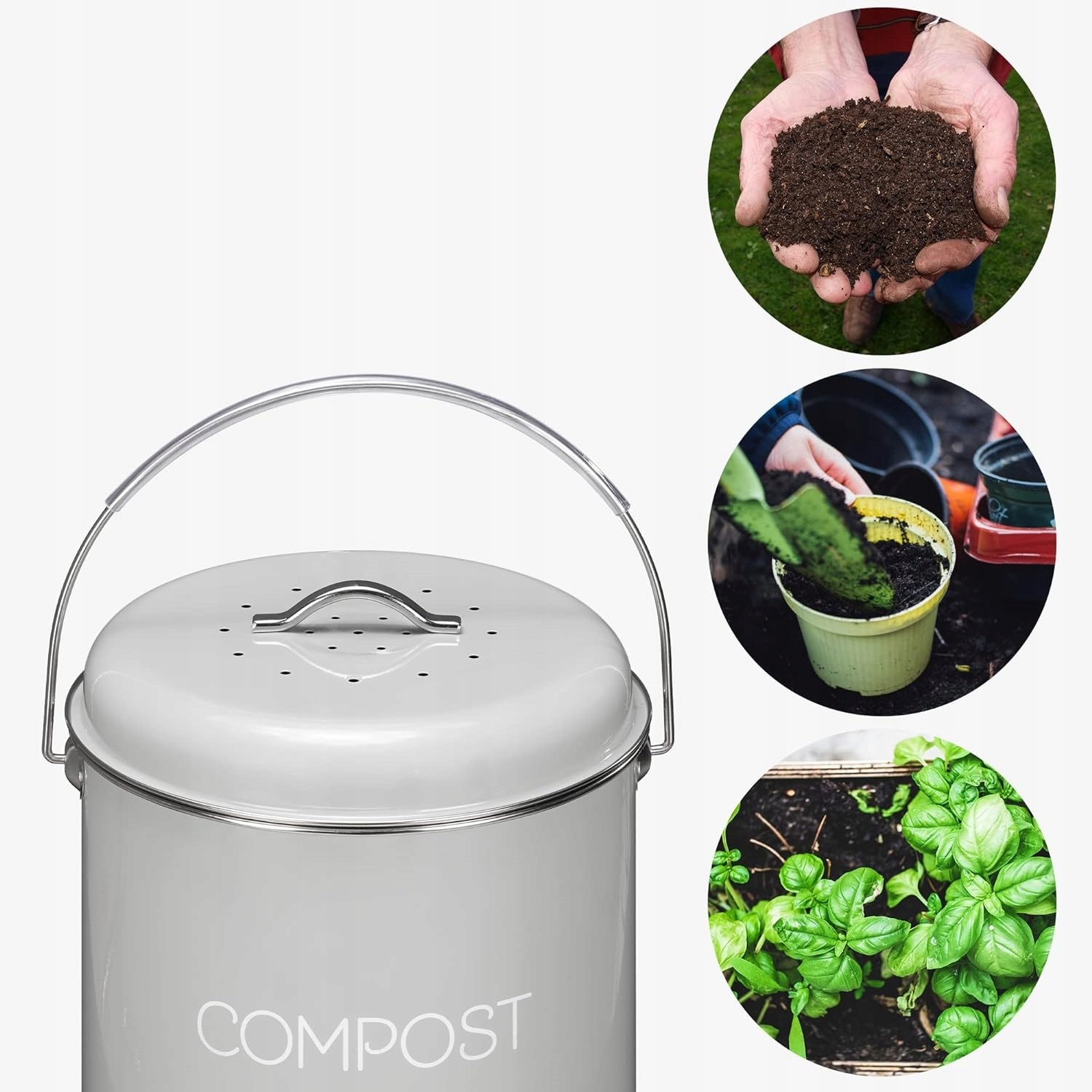 КОМПОСТНИК ОРГАНІЧНІ ВІДХОДИ 5Л СІРИЙ КОНТЕЙНЕР НЕРЖАВІЮЧА СТАЛЬ