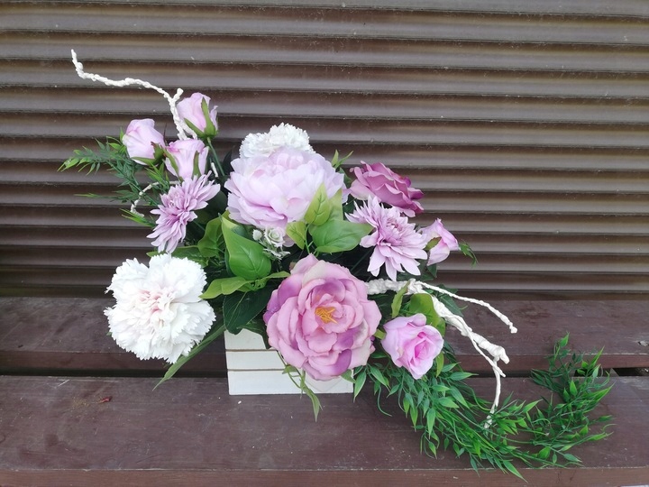 Могильна квіткова композиціябула ретельно створена з модними кольорами та дуже якісними матеріалами та штучними квітами.