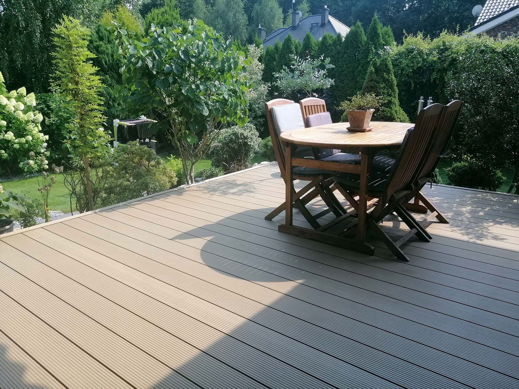 Стандартна композитна дошка — це зручний і простий матеріал, який підходить як для великих інвестицій, так і для невеликих домовленості. Плити ідеально імітують натуральну деревину, зберігаючи переваги пластику, особливо довговічність і легкість утримання в чистоті. Для монтажу даної дошки використовуються поздовжні несучі балки і кріпильні скоби. Цього невеликого набору достатньо для створення естетичної та довговічної тераси чи балкона. Як і інші композитні дошки, терасна дошка є двосторонньою, що означає, що ми отримаємо різний візуальний ефект залежно від наших уподобань.