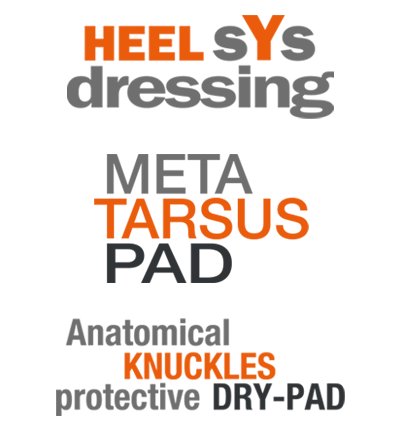 Анатомічні захисні подушки поверхні підошви, що відповідають за захист від потертостей і амортизацію. Їх структура підвищує зчеплення з поверхнею. Диференціюється для правої та лівої ноги.