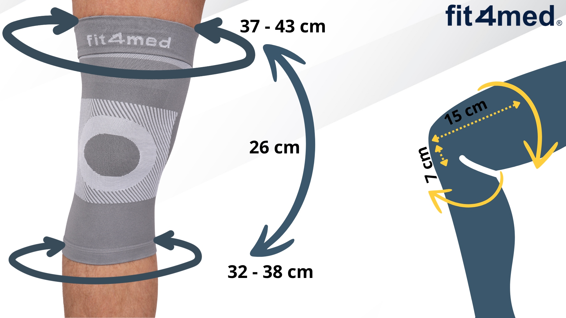 - Анатомічна форма та стимуляція рецепторів - забезпечує ідеальне прилягання до коліна, водночас стимулюючи рецептори шкіри, що підтримує стабільність суглоба та мікроциркуляцію.