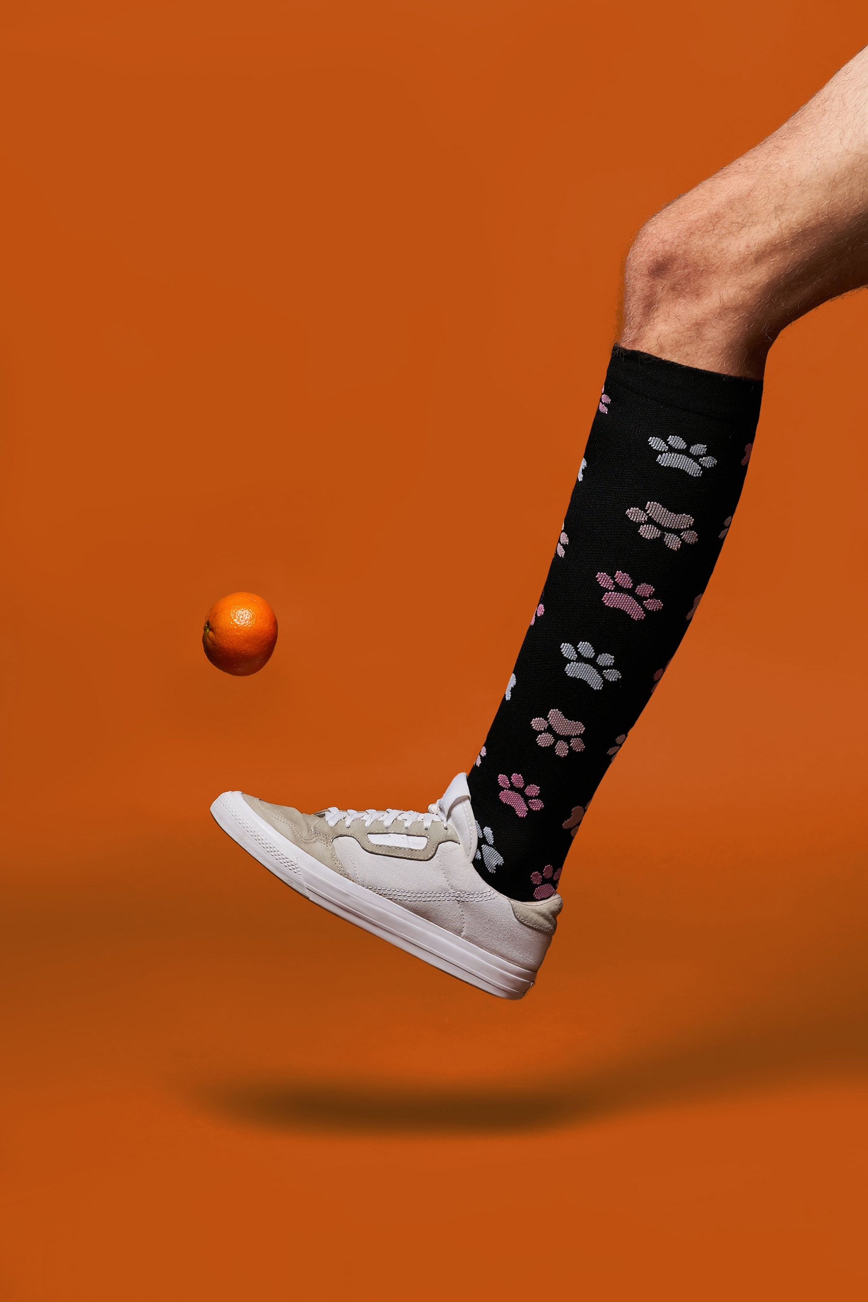Гольфи компресійні виготовлені з щільного, еластичного матеріалу, призначені для занять спортом і для профілактики вен. Компресійні шкарпетки забезпечують м'який, поступовий тиск, підтримують роботу вен і кровообіг в ногах, надають масажну і тонізуючу дію на шкіру. Вони ідеальні для занять спортом, далеких подорожей, а також для людей, які багато часу проводять на ногах або за кермом автомобіля. Компресійні шкарпетки виготовлені з тканин, які мають дихаючі властивості - вони захищають від перегріву і значно продовжують час, коли ноги залишаються сухими. Компресійні гольфи рекомендовані для зняття втоми, при інтенсивних фізичних навантаженнях, для профілактики набряків, варикозного розширення вен, тромбозу та інших захворювань вен. Модель на фото: обхват литок - 36 см, обхват щиколоток - 23 см, розмір взуття - 44. На ній 42-45 розмір.