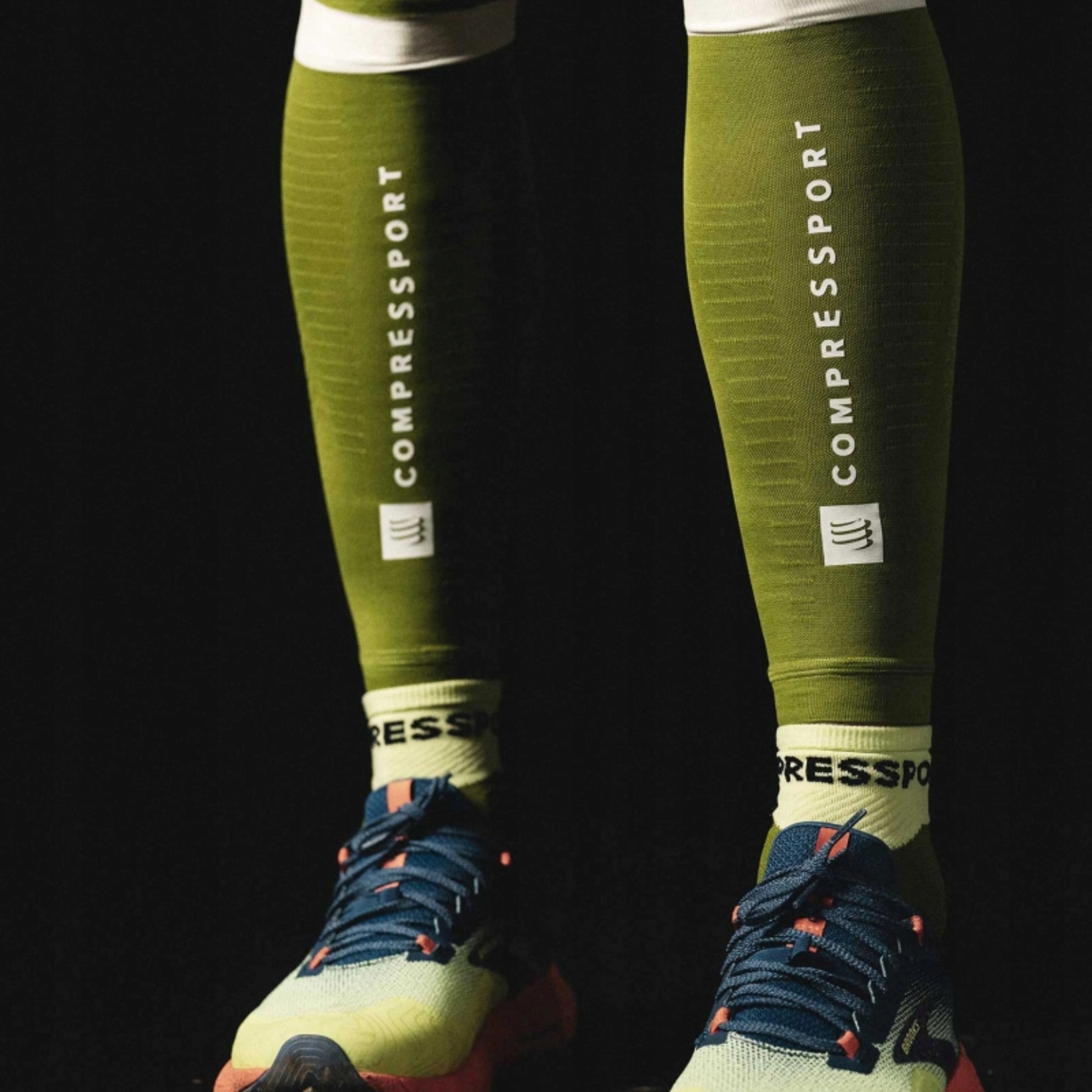 🦵 Компресійні рукави для литок для бігу Ultralight COMPRESSPORT R2V3 Green/White Reflective 🦵
