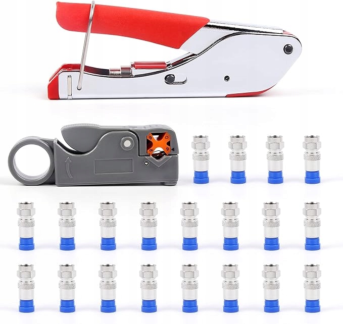 Інструмент для обтискання коаксіального кабелю з набором із 20 конекторів синього кольору