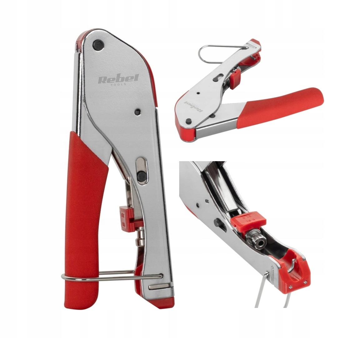 затискач стиснення для типів вилків f - надійний інструмент, призначений для монтажу концентричних кабелів rg59 та rg6 . Завдяки своїй суцільній конструкції та ергономічній ручці він забезпечує швидке, точне та постійне затискач стиснення компресій. Це важливий елемент обладнання для кожного інсталятора телевізора, САБ, відеоспостереження або кабельного Інтернету.
