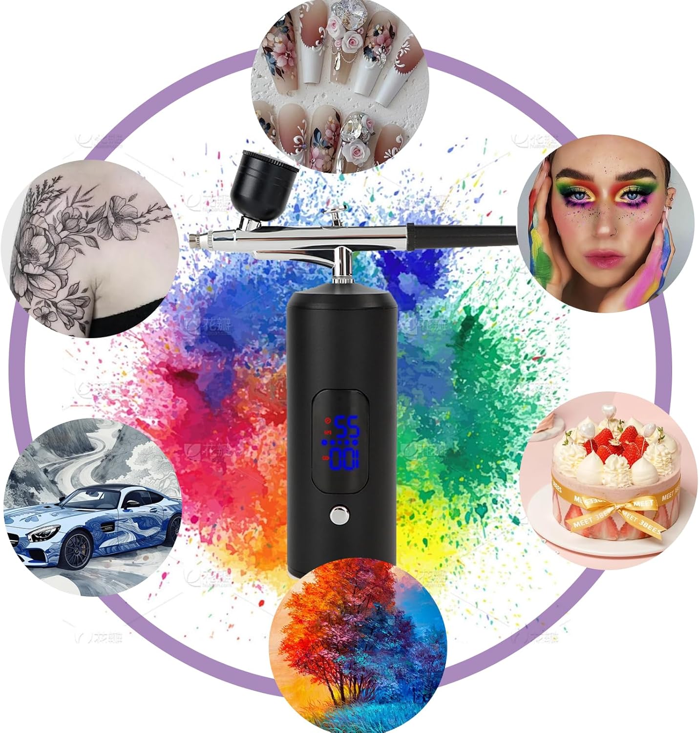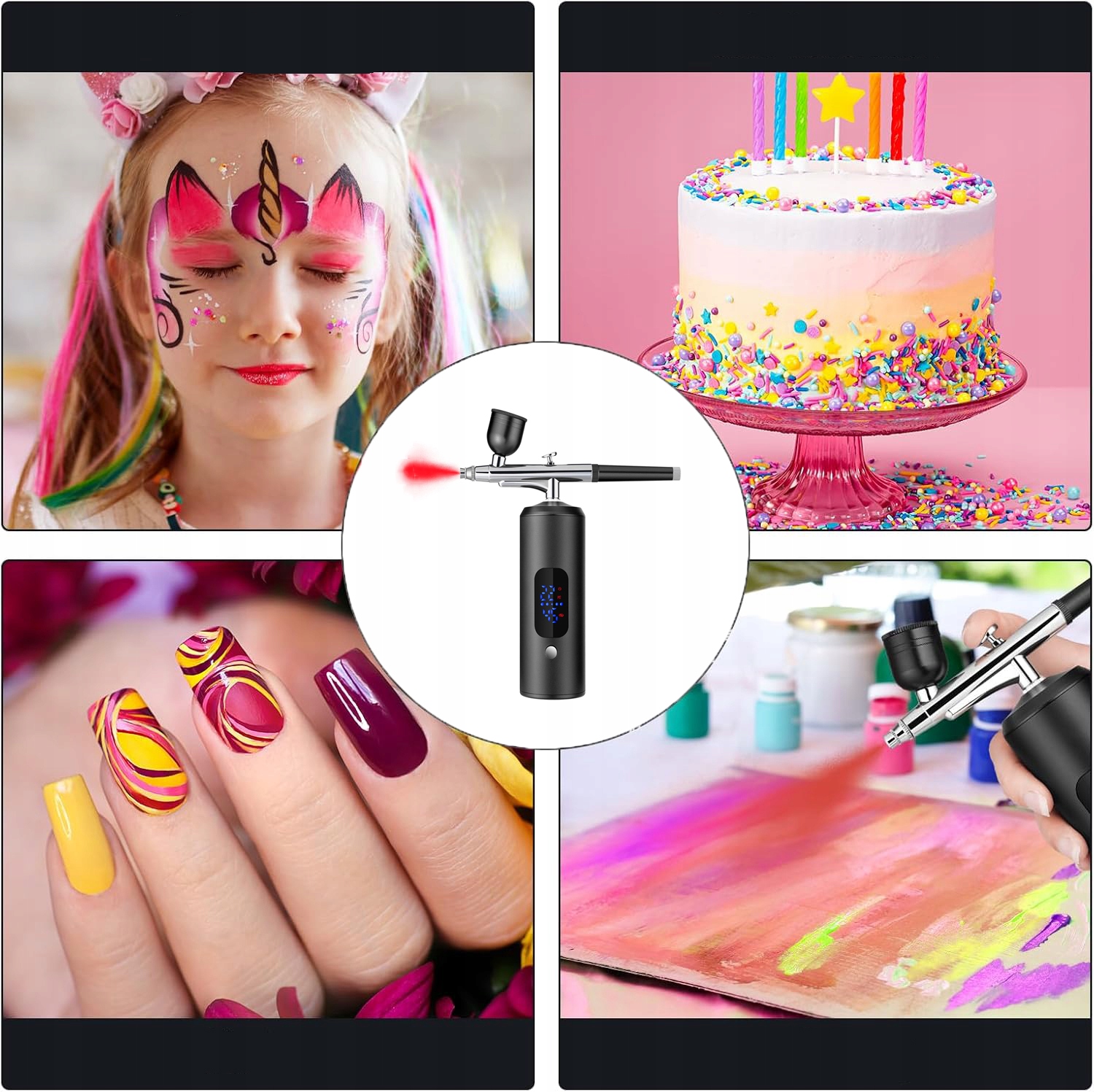🎨Портативний і зручний -З таким маленьким акумуляторним насосом для аерографа ви можете легко брати його на вулицю для багатофункціонального використання, малювання аерографом для художників, моделей аерографи, основи для макіяжу, аерографські нігті, прикраси для тортів, аерографські трафарети та тимчасові татуювання, ілюстрації, аерограф для хобі та перукарського мистецтва тощо.