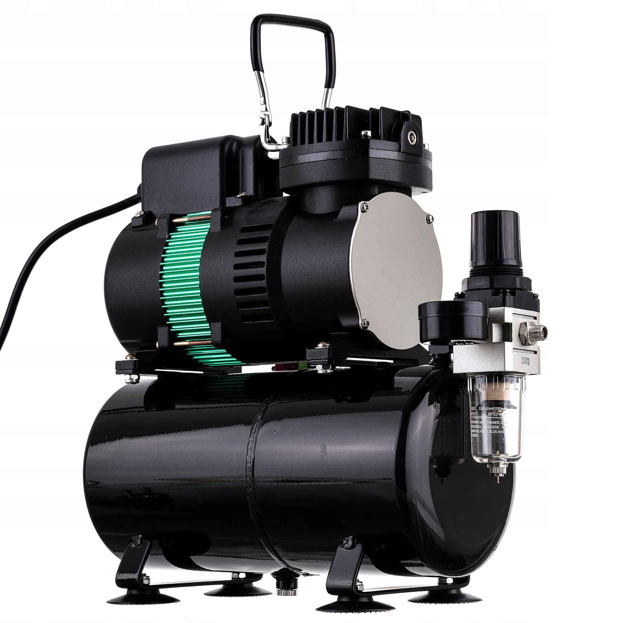 КОМПРЕСОР АЕРОГРАФА З ЦИЛІНДРОМ ОБ'ЄМОМ 3 ЛІ, 2 ВЕНТИЛЯТОРАМИ, ТИХИЙ НА МАСЛИНІЙ ОСНОВІ