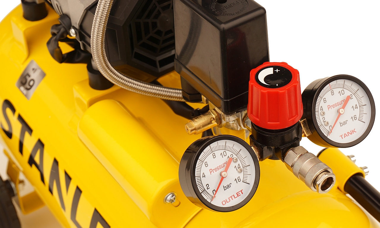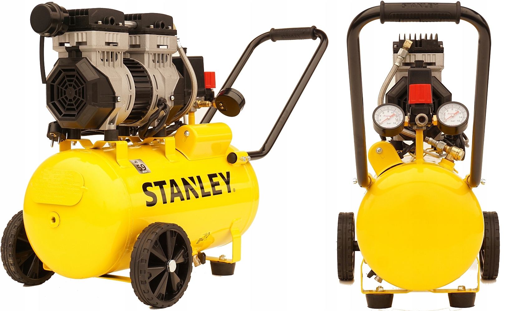 Спеціальний безшумний безмасляний компресор STANLEY з баком об’ємом 24 л є універсальним, економічним і простим у використанні пристроєм.