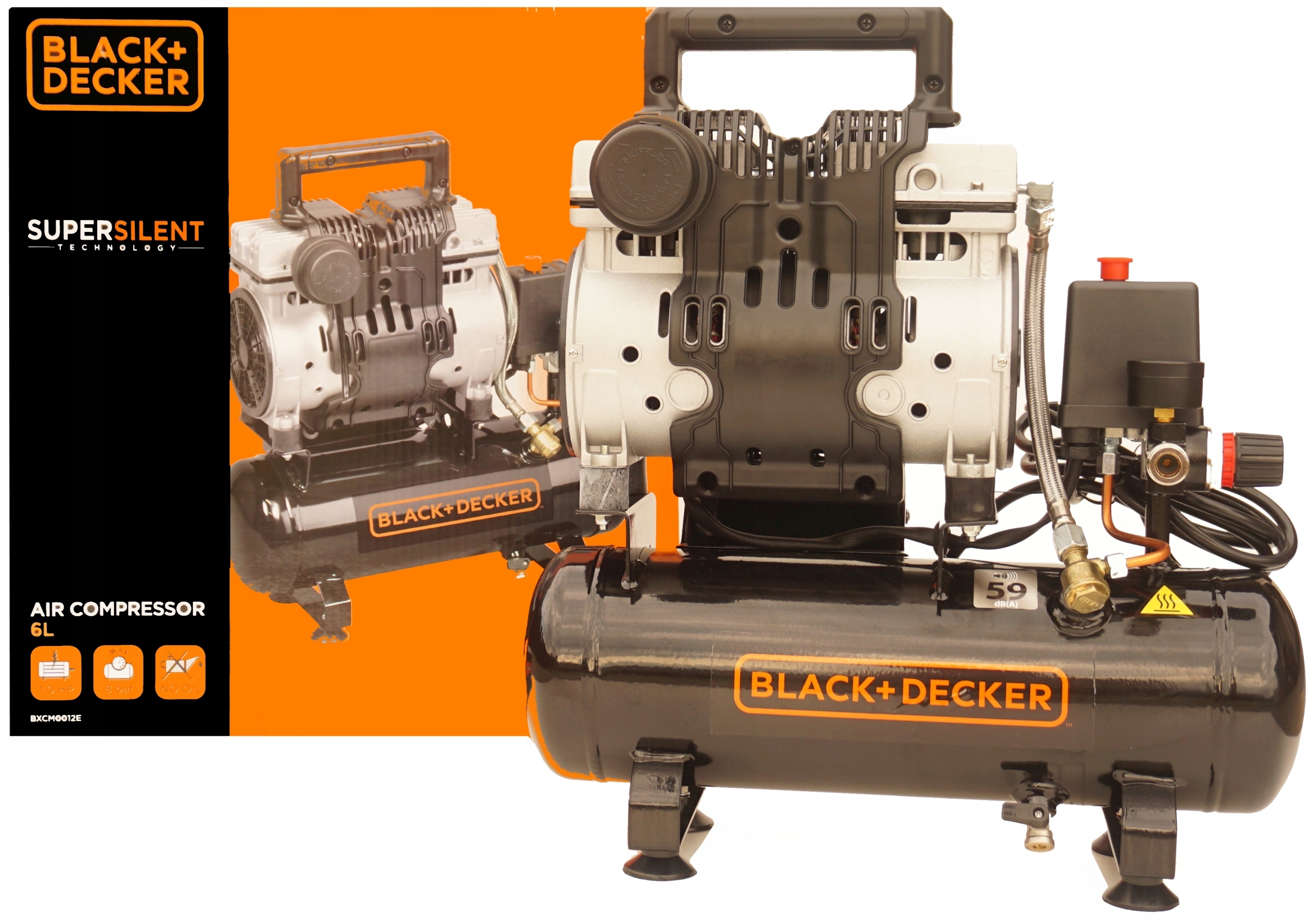 Особливо тихий безмасляний компресор Black&Decker із баком об’ємом 6 л є універсальним, економічним і простим у використанні пристроєм.