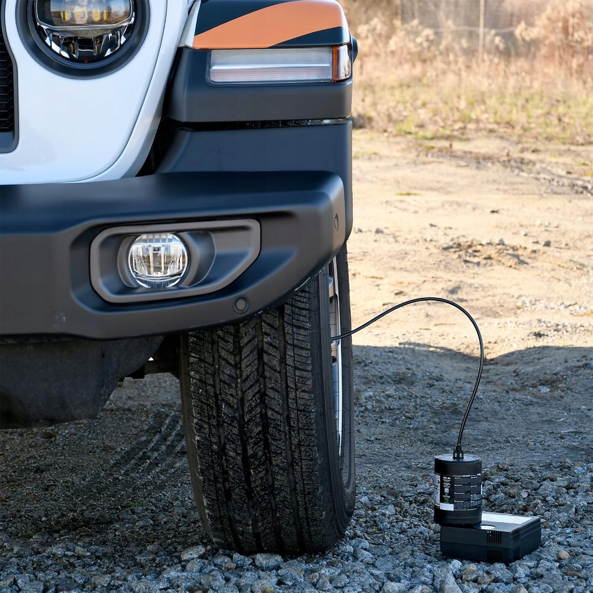 Ідеальний компресор для накачування шин. Якщо немає повітря, підключіть компресор згідно з інструкцією і просто ввімкніть його. У поєднанні з герметиком у балоні SealAir2K ідеально підходить для ремонту пробитих або пошкоджених шин у разі поломки та є оптимальною заміною запасного колеса.