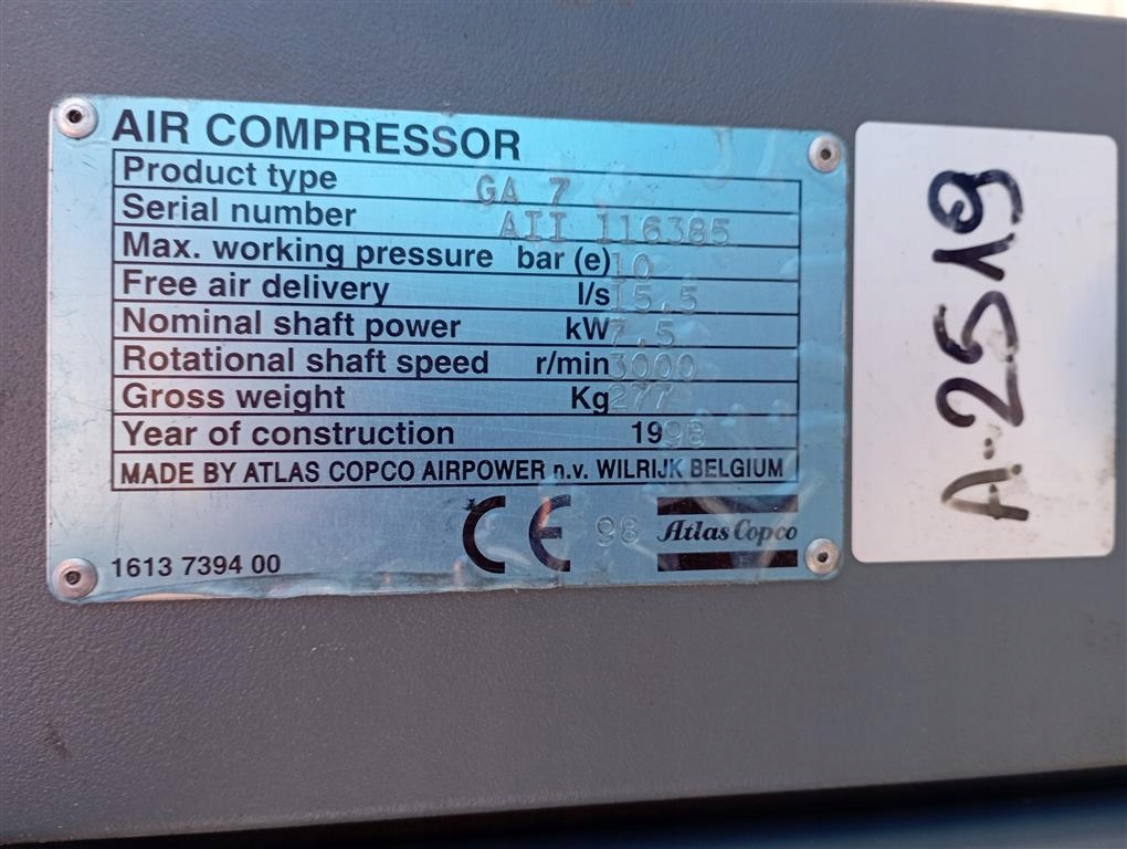 Гвинтовий компресор Atlas Copco GA7 7 кВт 930 л/хв 10 бар