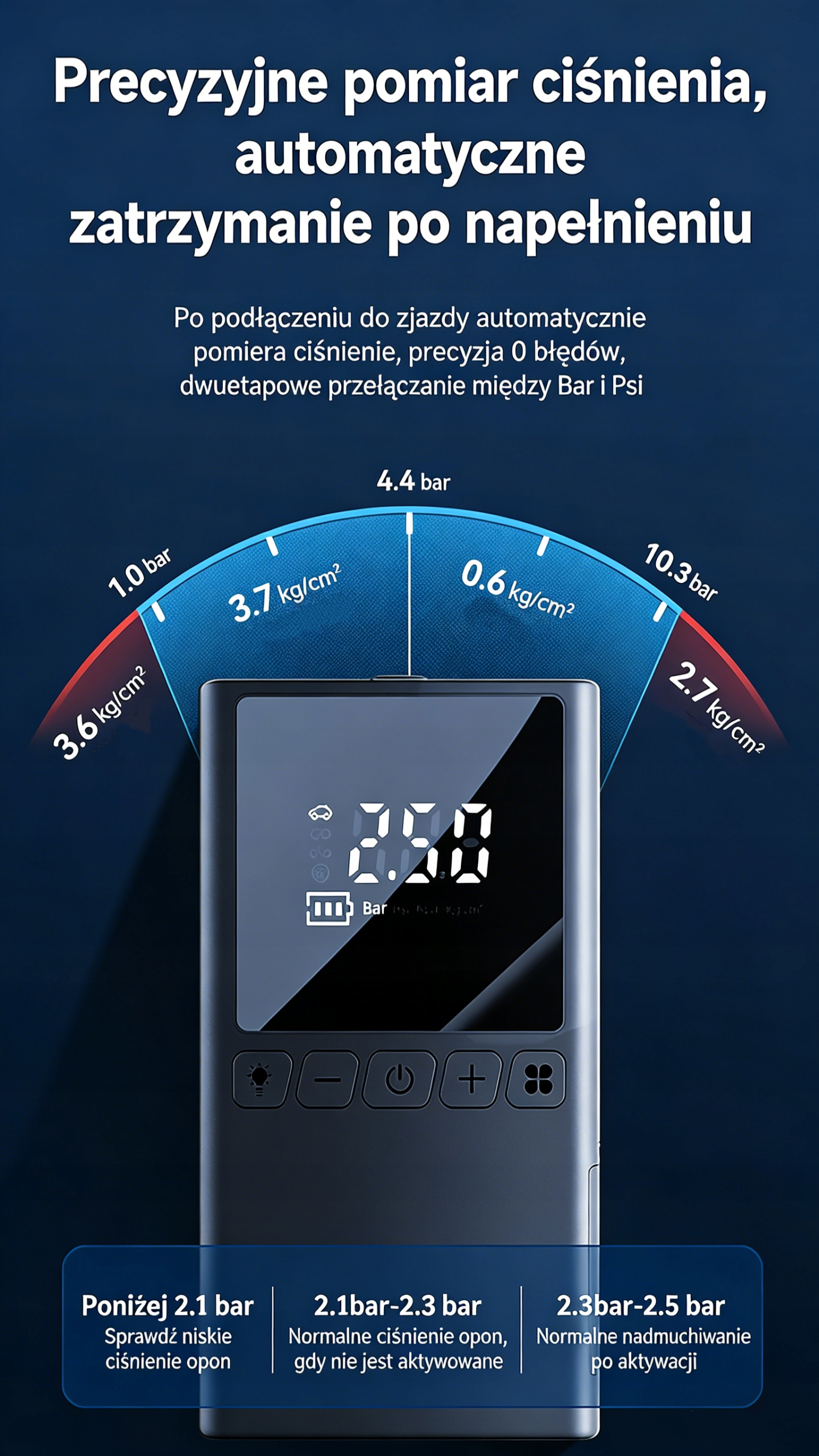 - ➡️ Точність до ±1 PSI - ідеально підходить для точного накачування коліс, м'ячів або спортивного обладнання. Просто налаштуйте, увімкніть і... готово.