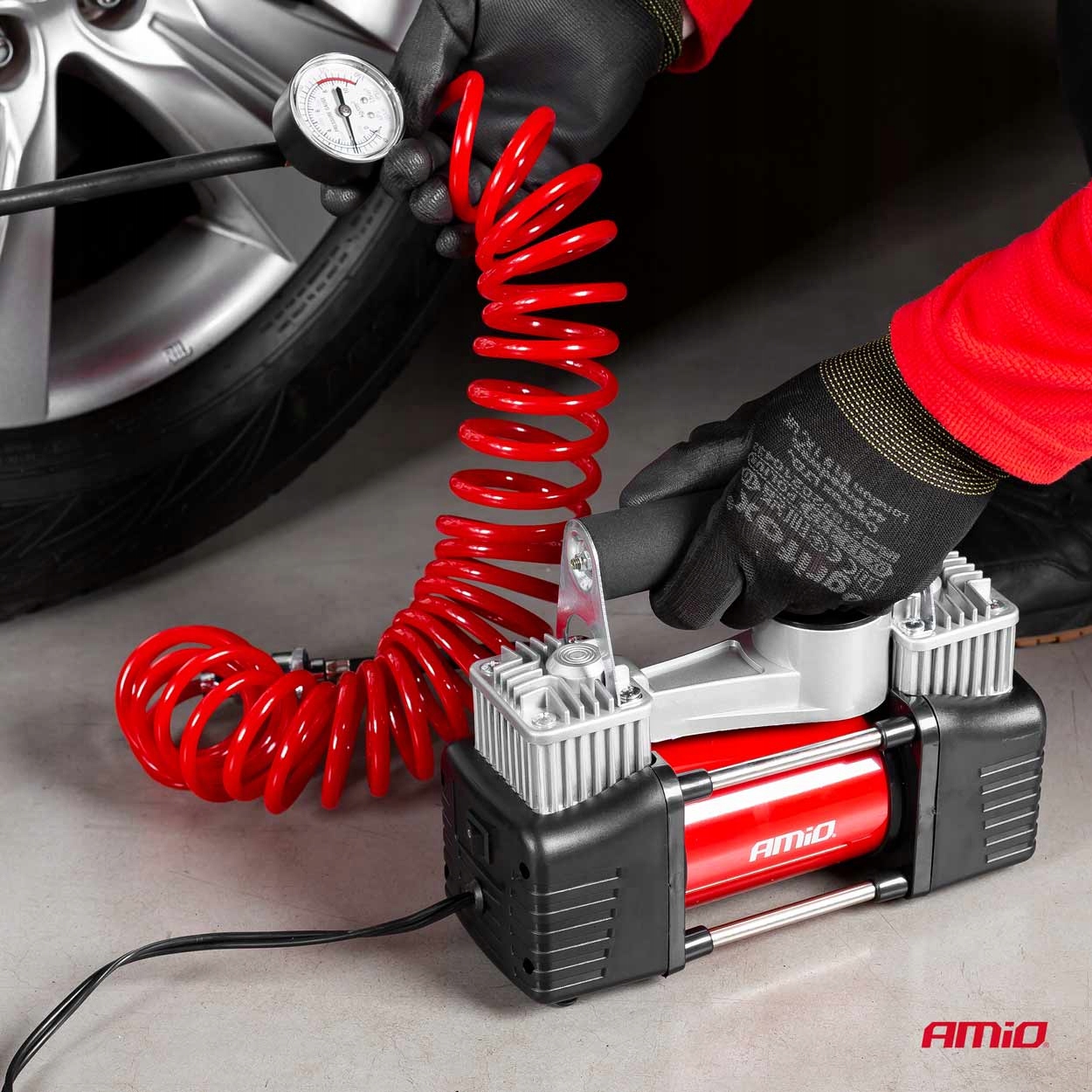 - Автомобільний компресор із сильним металевим компресором з двома площинами з низьким розміром та високоефективним манометром.