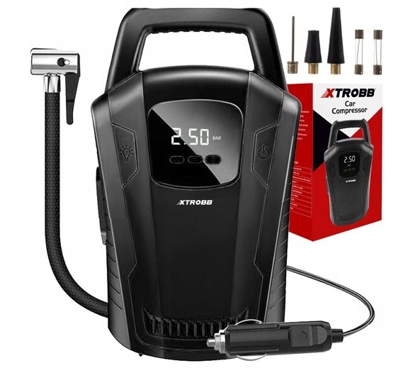 - CAR - Насос має кабель DC 12V з довжиною 2,8 м, а шланг довжиною 47 см, завершений затискаючим наконечником для перекачування автомобілів та мотоциклів. Пристрій також має ліхтарик, завдяки якому вам не вистачає світла під час нічного відмови. Це важливий інструмент, який дозволяє підтримувати належний тиск у шинах, що має вирішальне значення для безпеки водіння, ефективності палива та довговічності шин.