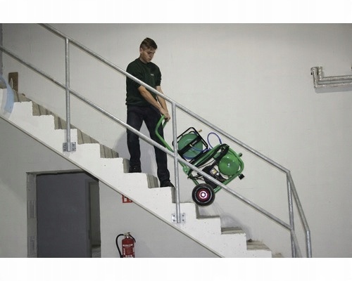 - Максимальна швидкість: 2840 об./хв. клапан, редуктор тиску з манометром, манометр з вихідним тиском, 2 регульованих з’єднання для стисненого повітря, з’єднувальний ніпель, складна ручка для транспортування, тримач котушки для шланга