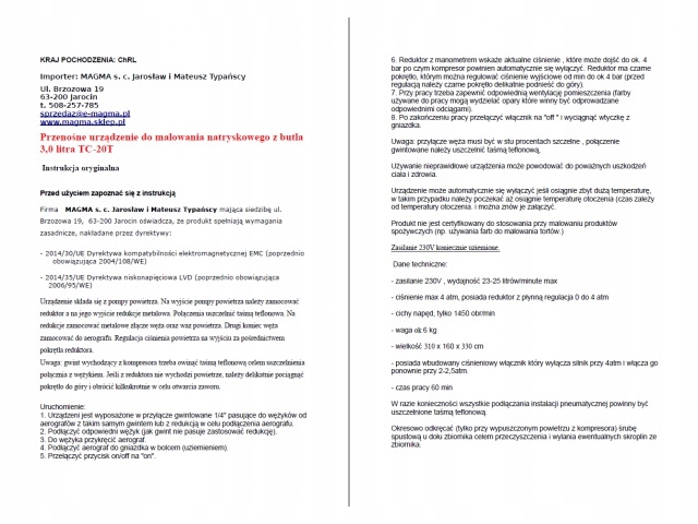 Набір для фарбування MAGMA, компресор з циліндром 3L TC-20T.