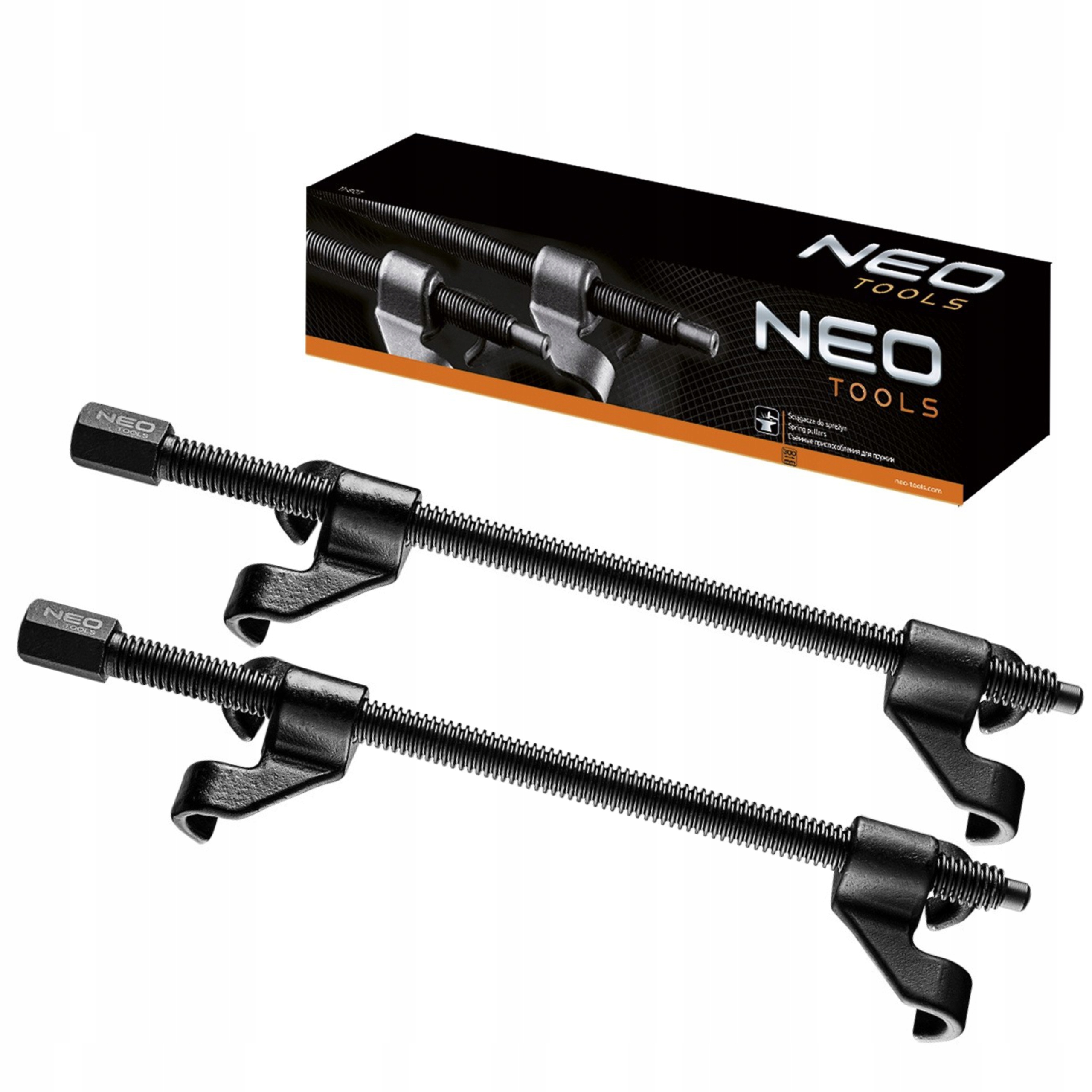 Пружинні компресори NEO (арт. 11-807), ковані, довжиною 300 мм. У набір входить 2 знімачі для обслуговування всіх типів пружин, напр. в стійках McPherson. Знімач працює з тріскачкою 1/2", має 4 точки кріплення та суцільну різьбу, що забезпечує безпечну роботу під великими навантаженнями. Сертифікат TÜV Rheinland гарантує високу якість та надійність продукту. Бренд NEO відповідає очікуванням професіоналів.