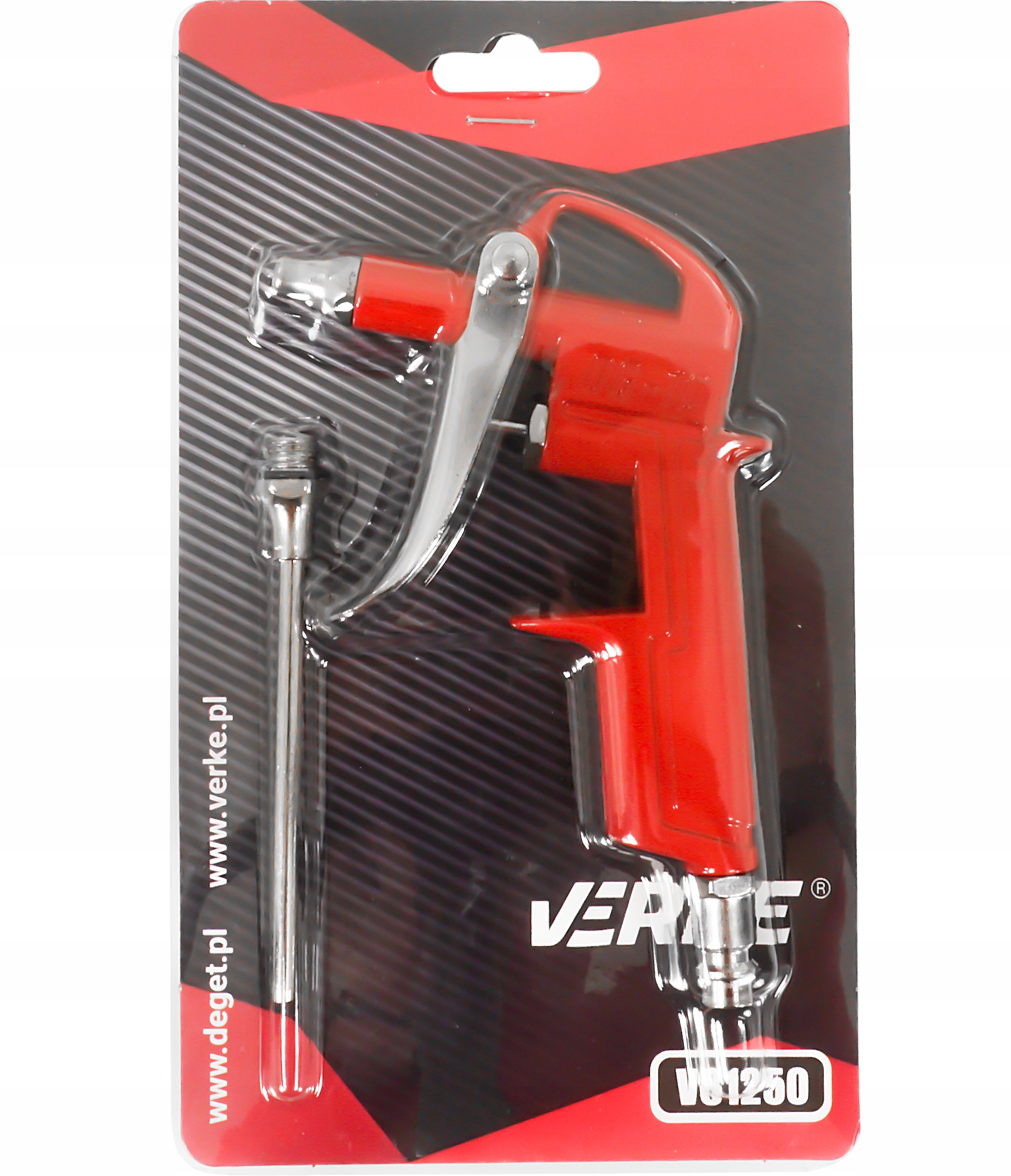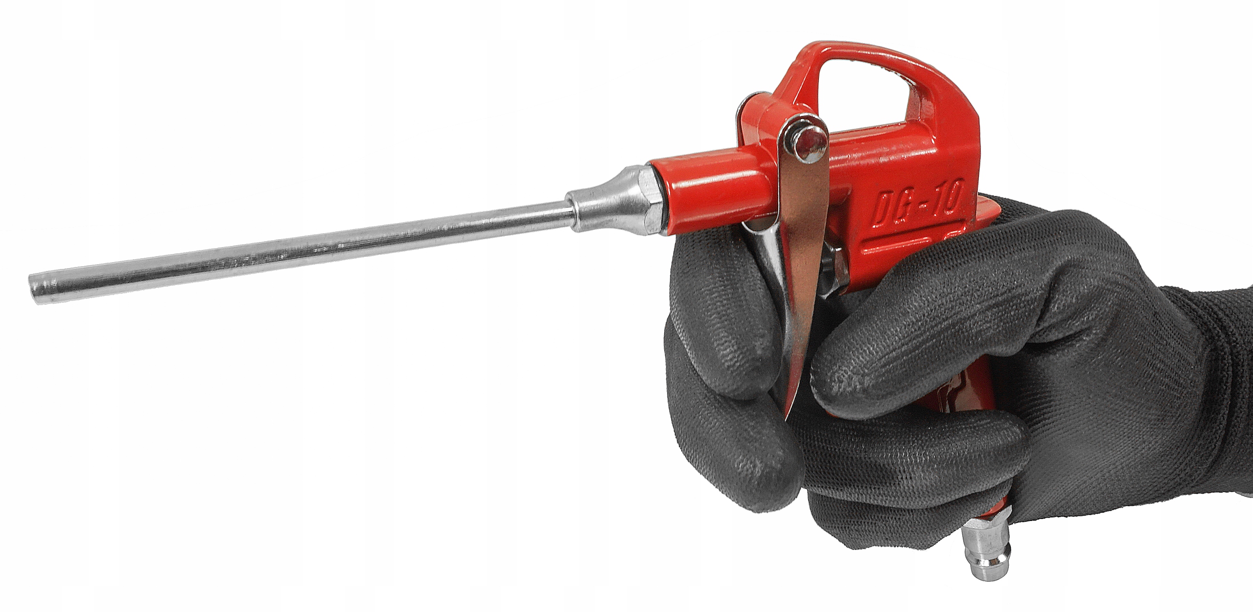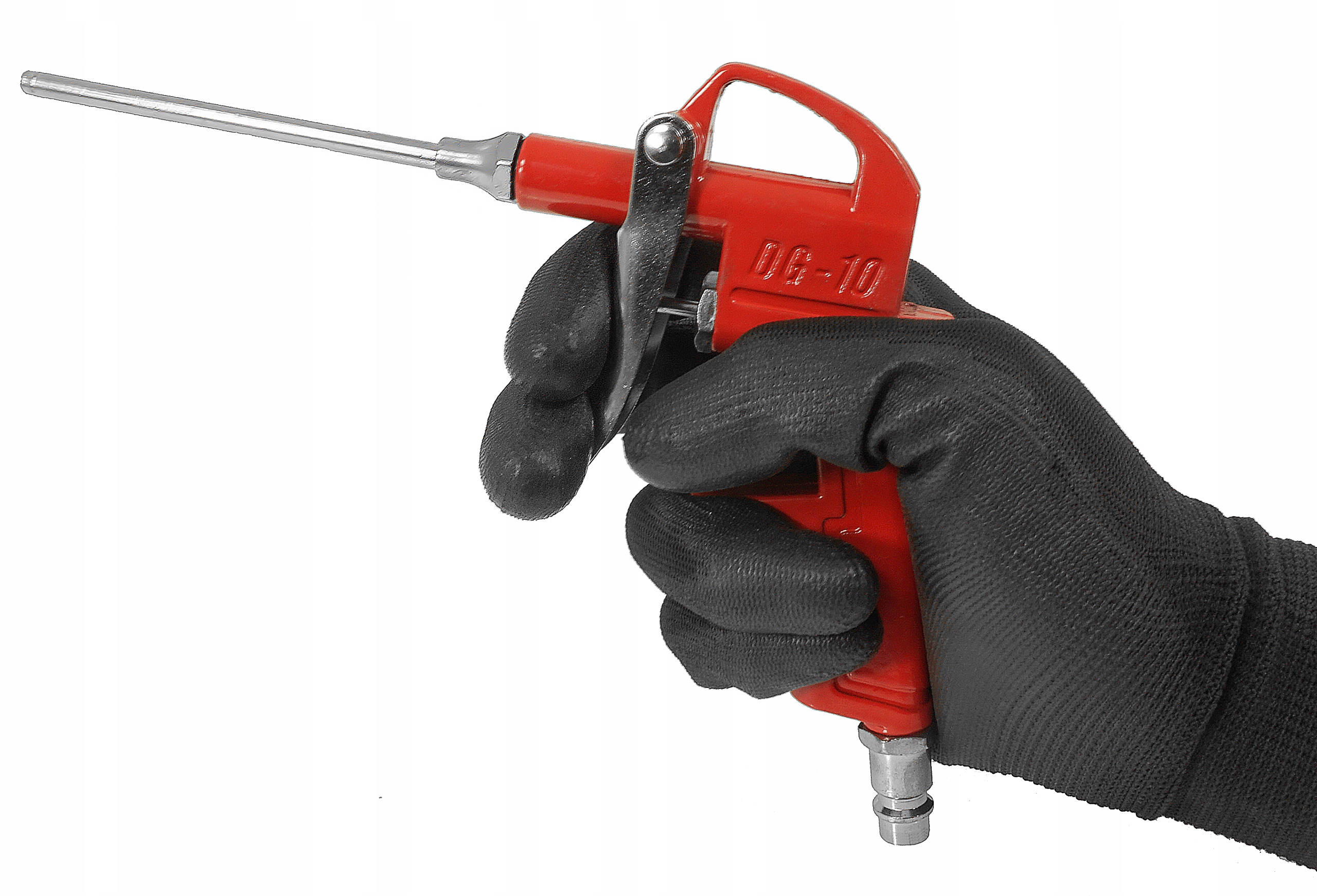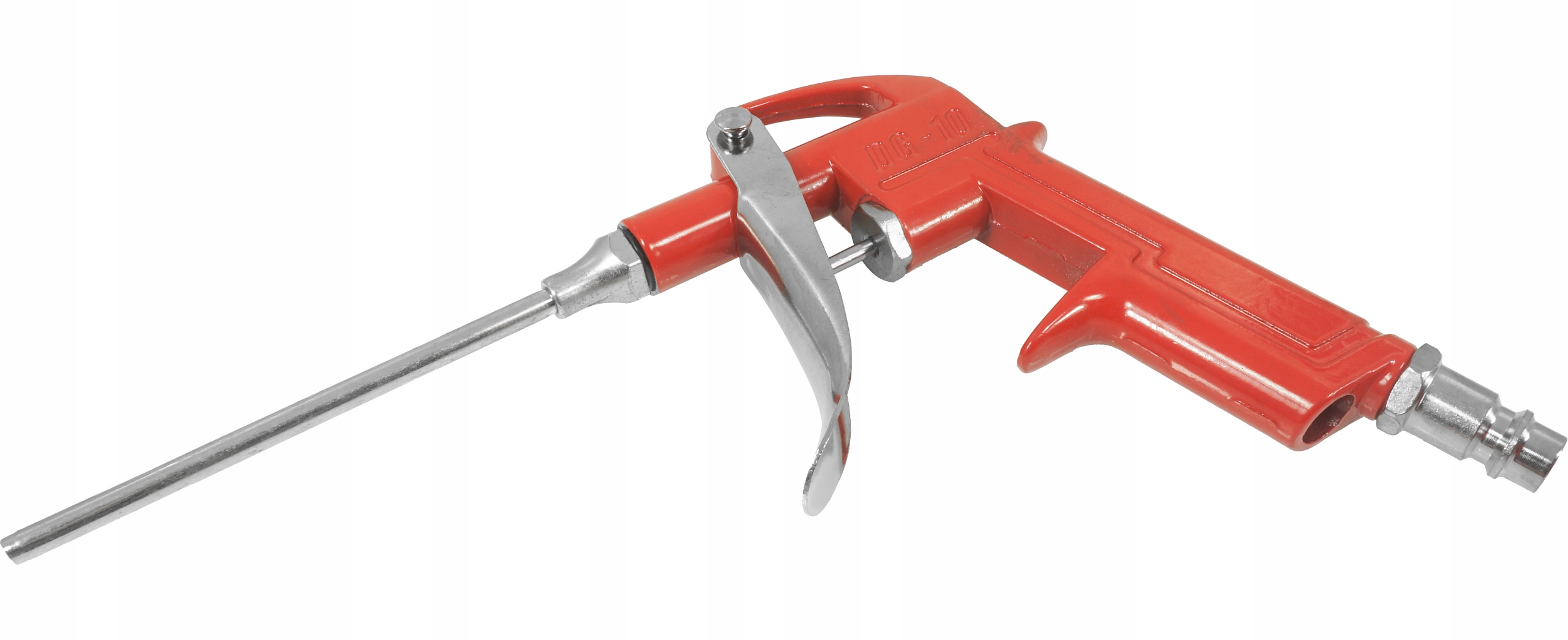Пістолет призначений для очищення забруднених поверхонь струменем стисненого повітря. Завдяки довгій насадці можна використовувати пістолет у важкодоступних місцях. Незамінний на кожному заводі та службі.