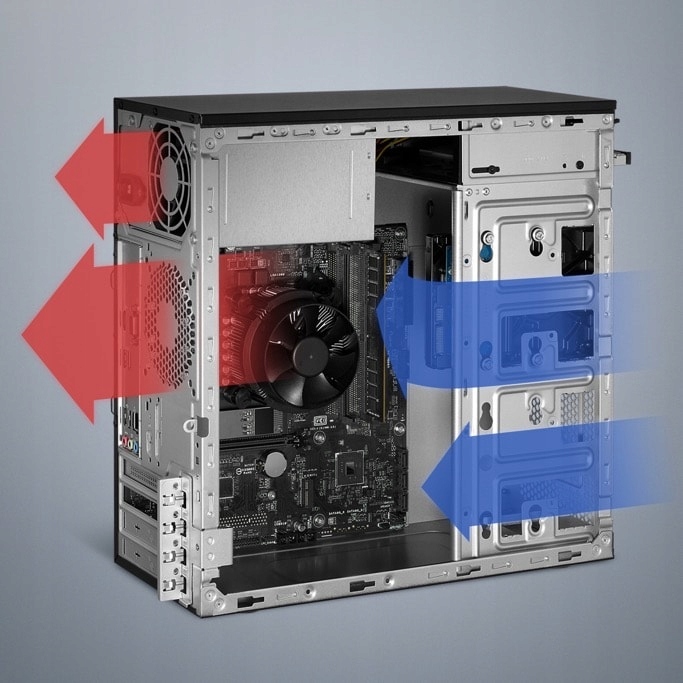 Для забезпечення стабільної роботи в комп’ютері використовується інноваційна багатоканальна система охолодження. Крім того, великий корпус забезпечує краще розсіювання тепла.