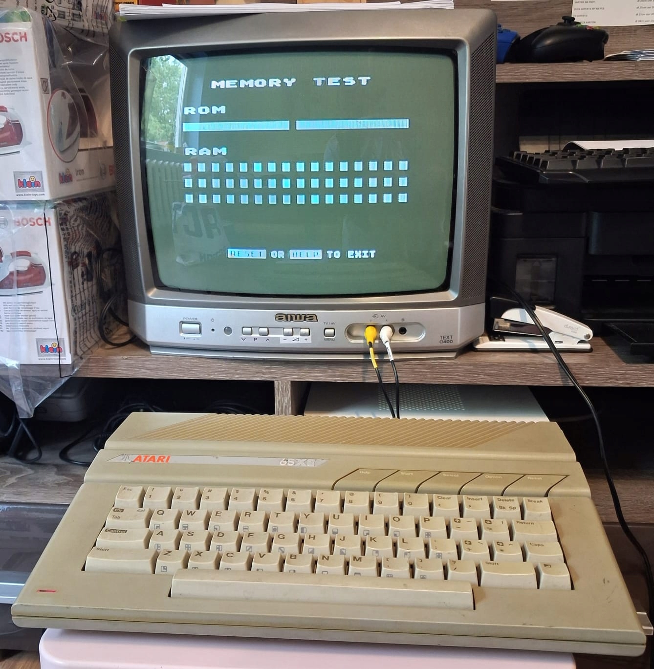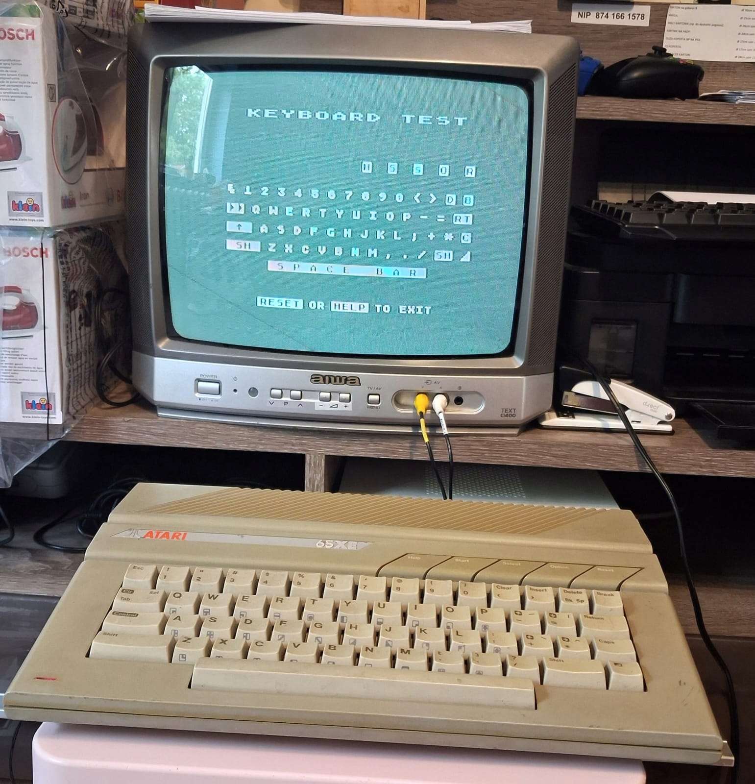 - Ми продаємо сам Atari 65xe сам без жодних кабелів без підсилювача, без джойстиків тощо. Обладнання було перевірено та увімкнено. Selfest пройшов без проблем. Відсутність кольорів здивує іноді, але пізніше вони знову вимкнуться. На числовій клавіатурі немає трьох клавіш.