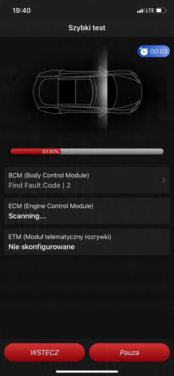 Тестер має т.зв Функція технічного обслуговування, тобто похідні ярлики для керування вибраними сервісними функціями з робочого столу пристрою без необхідності вводити контролер після повного сканування автомобіля