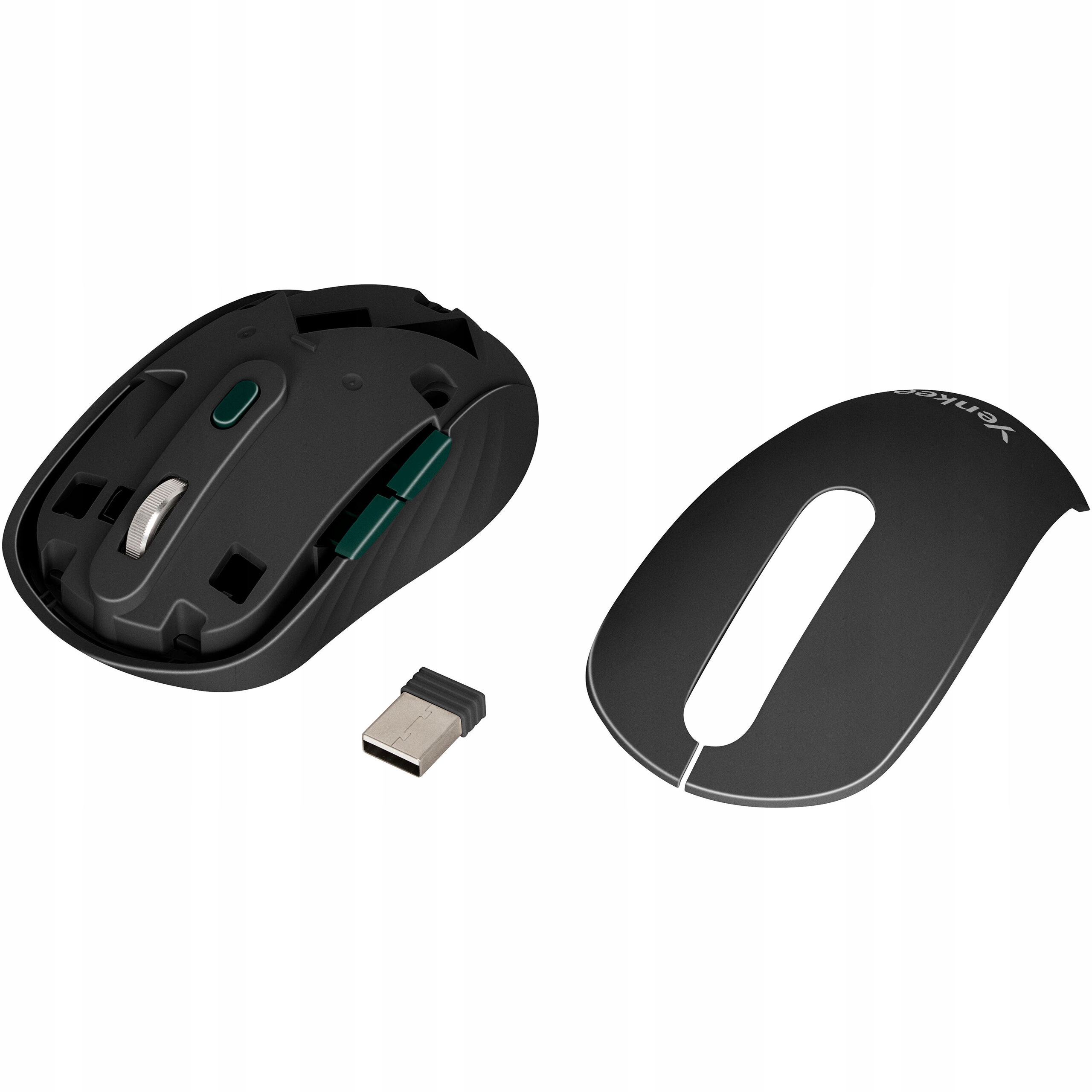 Візьміть мишу, де б ви не хотіли її використовувати. Місце для зберігання для приймача 2.4G полегшує транспортування Yenkee YMS 2045BK, але це також буде корисно, коли миша не залишає ваш стіл. Це запобігає втраті цього елемента, коли ви берете з собою ноутбук у подорож, але вам не потрібна миша. Відсік для приймача має легкий клапоть з магнітним закриттям.