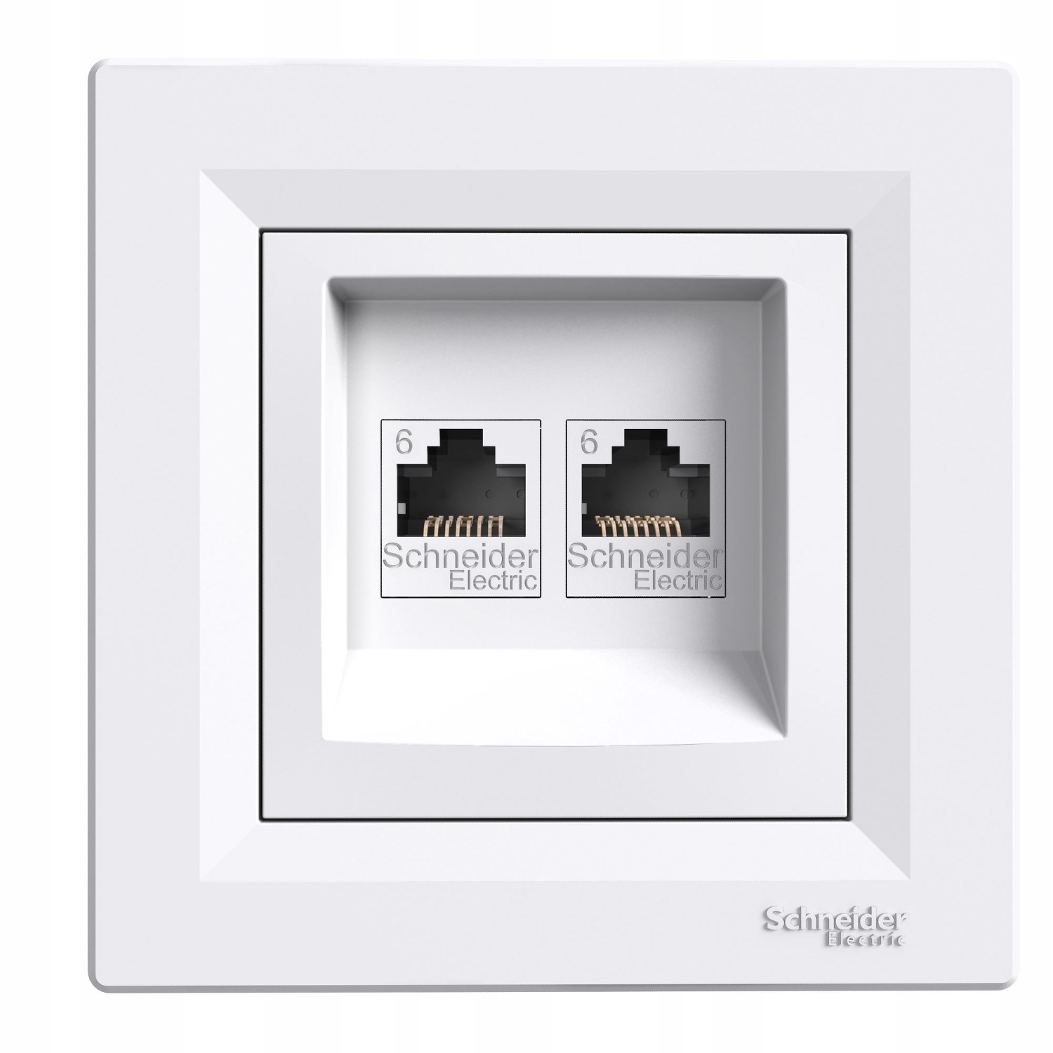 Комп’ютерна подвійна розетка RJ45, категорія 6e, екранування кабелю UTP, біла, серія Asfora, бренд Schneider Electric, каталожний номер EPH4800121.
