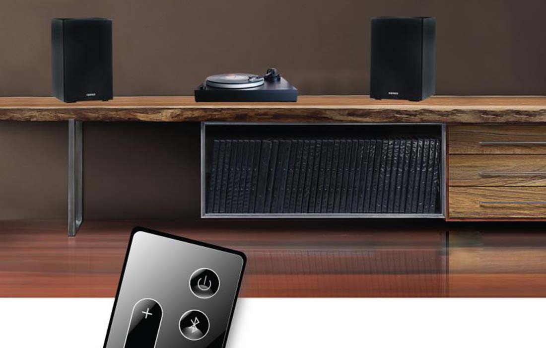 динаміки можна керувати з невеликим пультом дистанційного керування, включеним у набір, що живиться від акумулятора . Він працює з інфрачервоним портом, який розміщується в передній стінці активної колони. За допомогою його довідки ми увімкнемо та вимкнемо динаміки, регулюємо гучність, і ми можемо керувати музикою, відтвореною за допомогою Bluetooth.