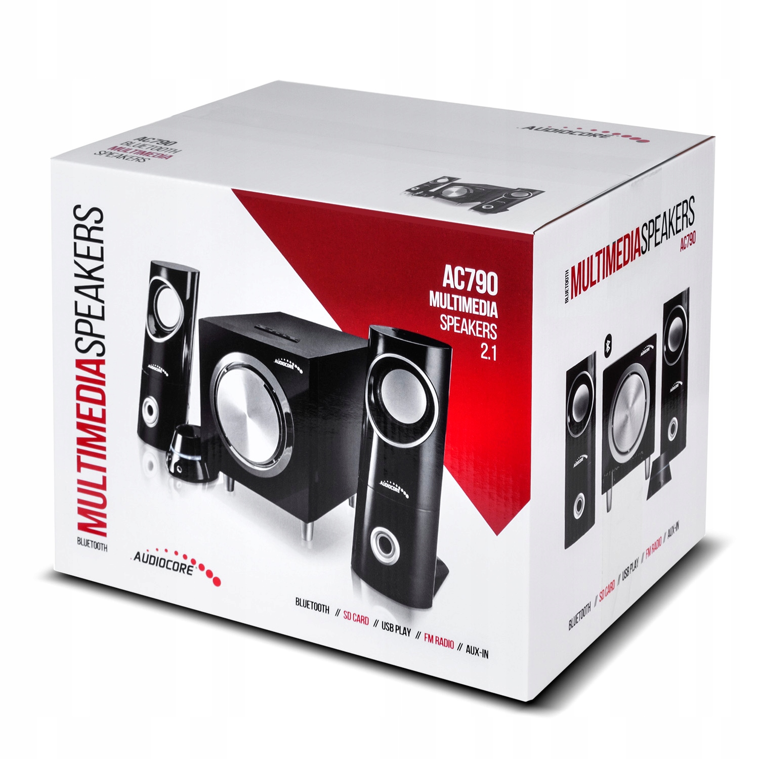 це набір 2.1 колонок, який відрізняється привабливим і сучасним дизайном. Представлений набір Audiocore AC790 складається з двох сателітних динаміків, які забезпечують стереозвук і одного НЧ-динаміка, що відповідає за відтворення басів.