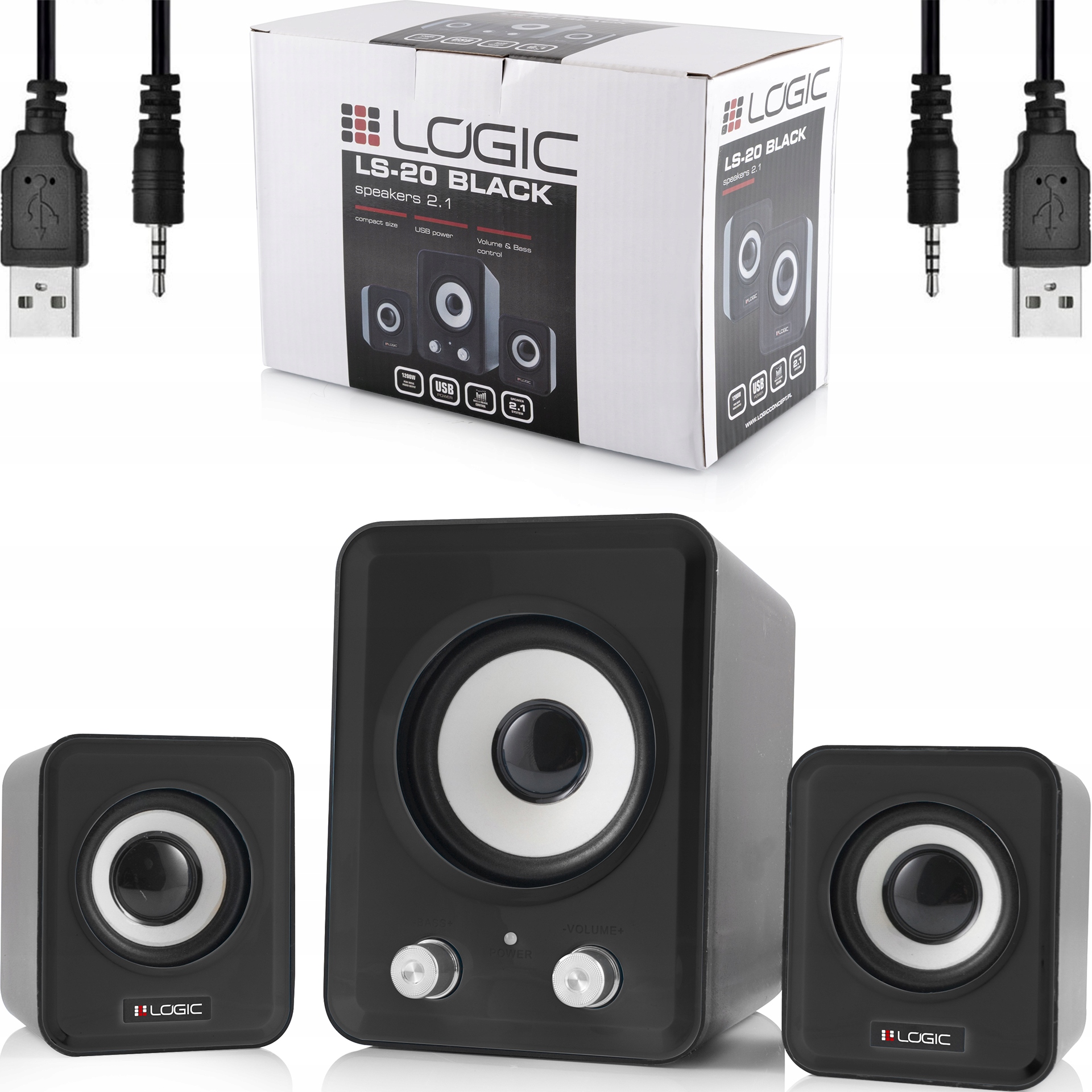 це набір гучномовців 2.1, що складається з двох сателітних колонок (кожна потужністю 3 Вт) і одного низькочастотного динаміка (потужністю 5 Ватт). Набір LS-20 відрізняється якісним звуком і привабливим сучасним дизайном. LS-20 — це пропозиція для кожного меломана, який шукає маленькі динаміки для настільного або портативного комп’ютера. Завдяки невеликим розмірам і легкій конструкції їх можна легко і зручно транспортувати, наприклад, з дому на зустріч з друзями. Дві ручки, розташовані на передній частині НЧ-динаміка, дозволяють легко регулювати гучність всього наборуі дозволяють збільшувати або зменшувати інтенсивність підсилення басів. З живленням від USB-кабелю колонки приносять багато радості всім користувачам під час перегляду фільмів або будь-яких інших мультимедійних розваг. Динаміки LS-20 також вражають естетично, чорний колір надає сучасного вигляду.