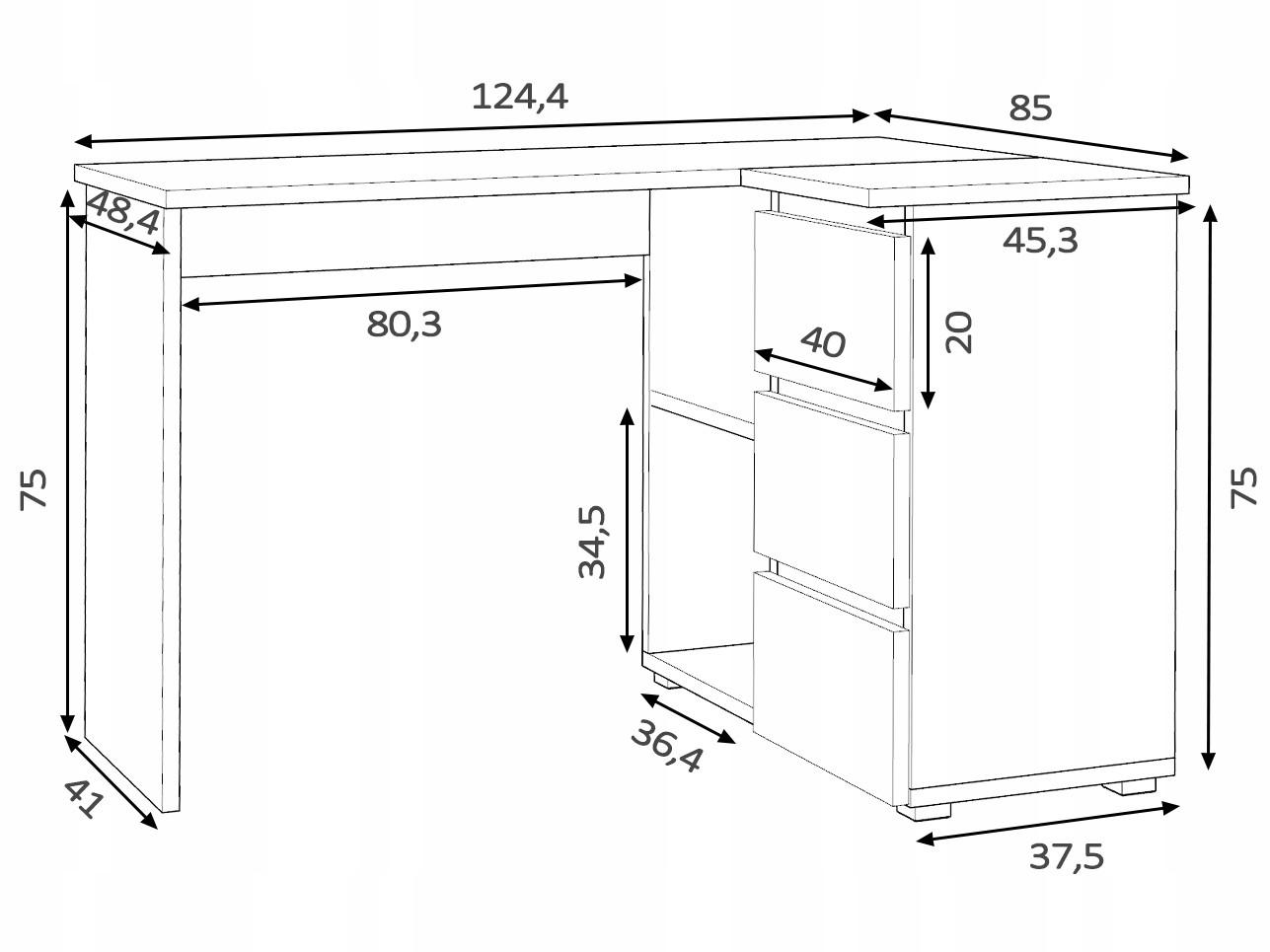 - Стіл складається з двох сторін, можна поставити спиною досередини (*коротша сторона столу не закінчується за ящиками!)