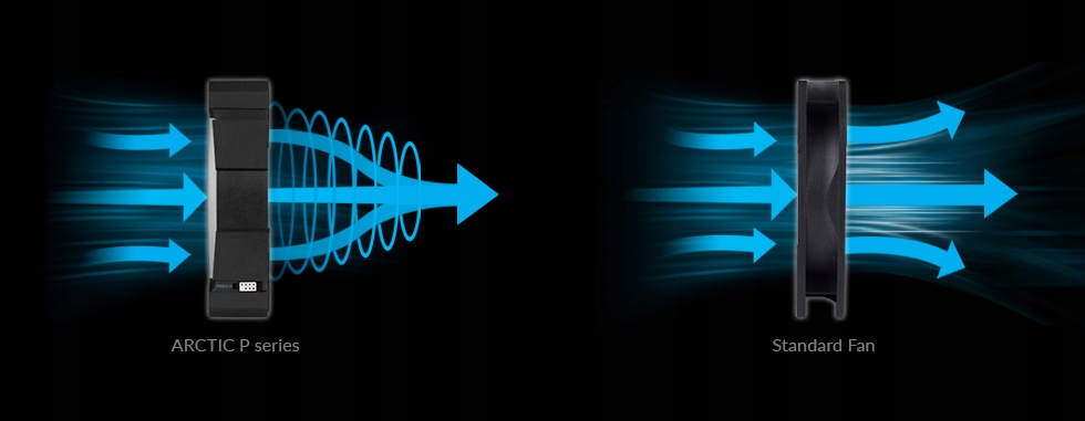 У випадку BioniX P120 A-RGB, як і у всій серії P, особливий акцент робиться на концентрованому потоці повітря та високому статичному тиску. Вентилятор гарантує надзвичайно ефективне охолодження навіть при підвищеному опорі повітря. Це робить BioniX P120 A-RGB особливо придатним для використання в закритих вентиляційних отворах або входах із фільтрами.