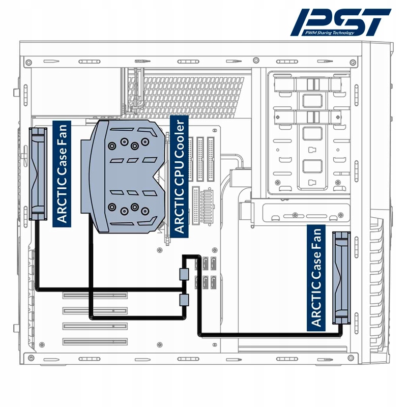 Якщо ви хочете підвищити ефективність охолодження свого ПК, ви отримаєте кілька корпусних вентиляторів, що працюють паралельно (оскільки це вимагає 10 вентиляторів для подвоєння рівня шуму). Але яка користь, якщо вони не працюватимуть разом? PST гарантує, що всі вентилятори слухають один керуючий сигнал. Наприклад. Ви надаєте ШІМ-сигнал охолодження ЦП і гарантуєте, що корпусні вентилятори вимикаються при низькому навантаженні та вмикаються за потреби.