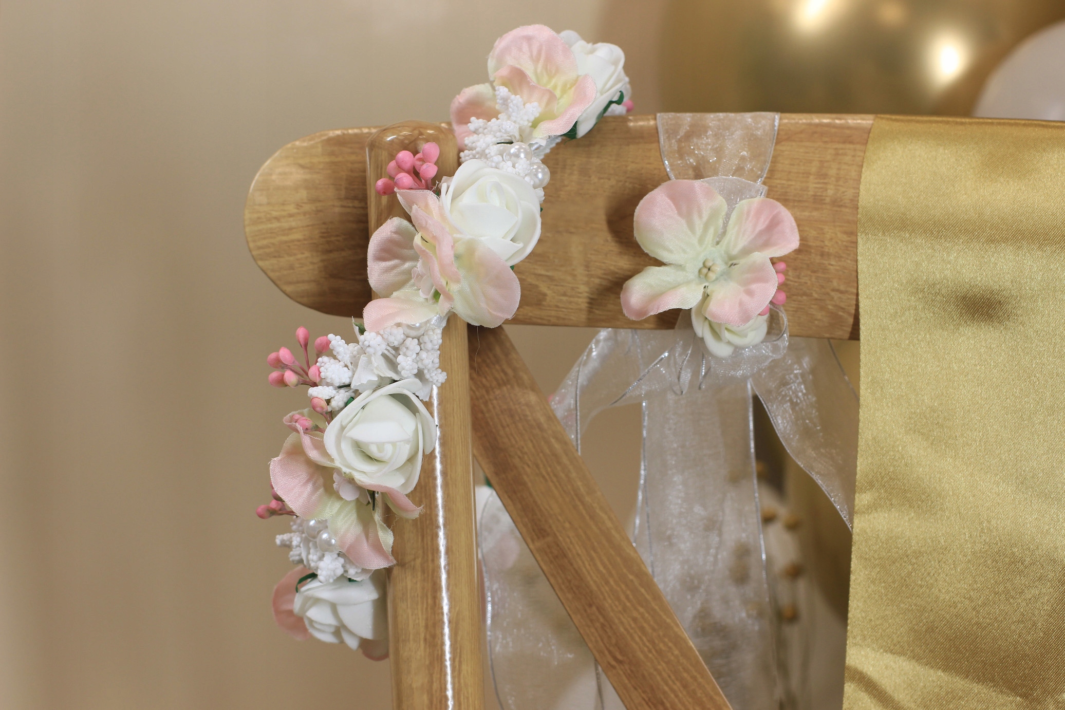 - Витончені білі та рожеві квіти є символом чистоти та невинності, ідеально поєднуючись з атмосферою Першого Святого Причастя.