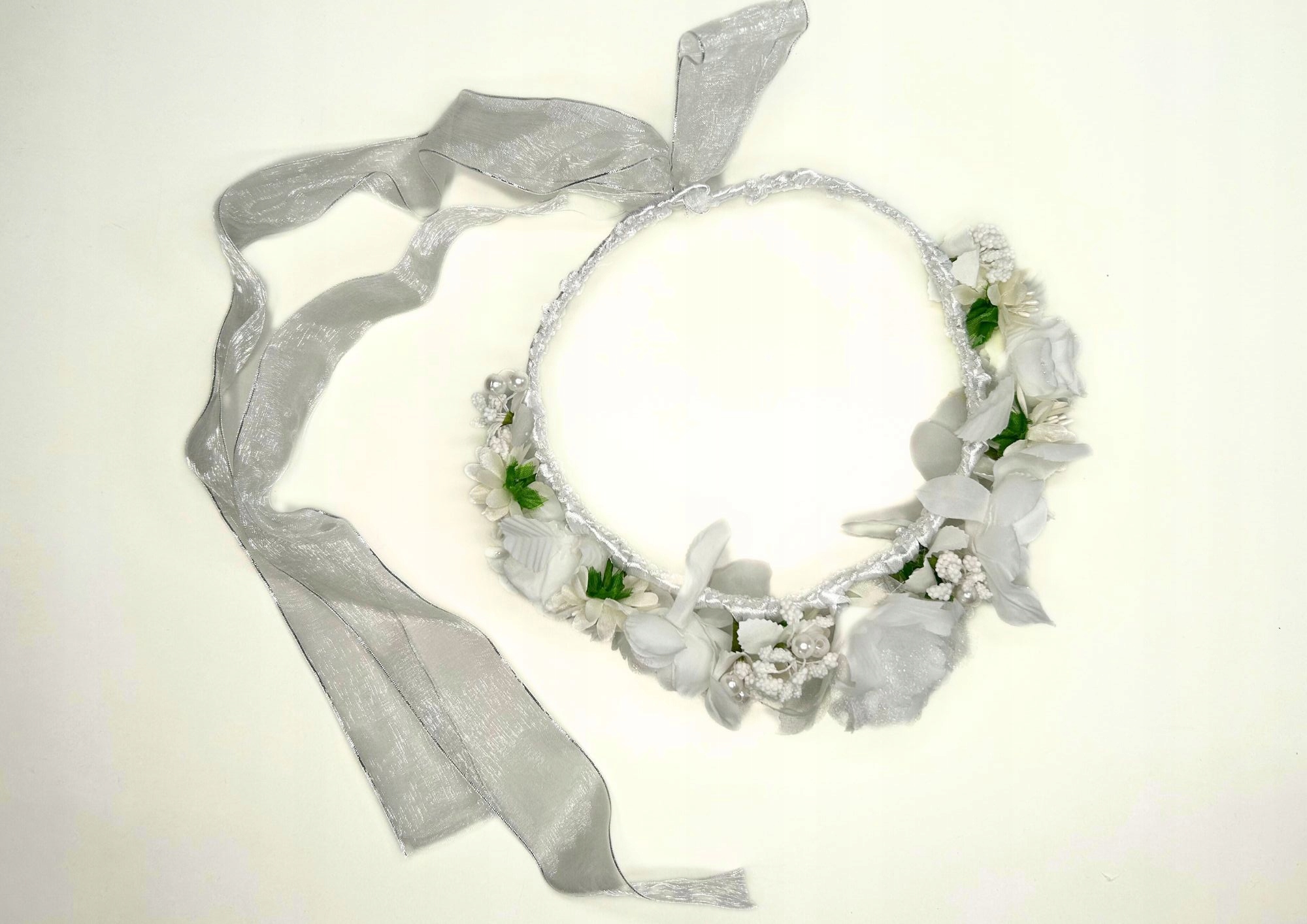 Komunijny Wianek na Głowę Komunia Opaska Białe Kwiatki