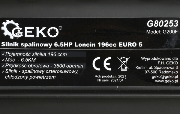 4-тактний двигун внутрішнього згоряння LONCIN з максимальною потужністю 6,5 к.с.