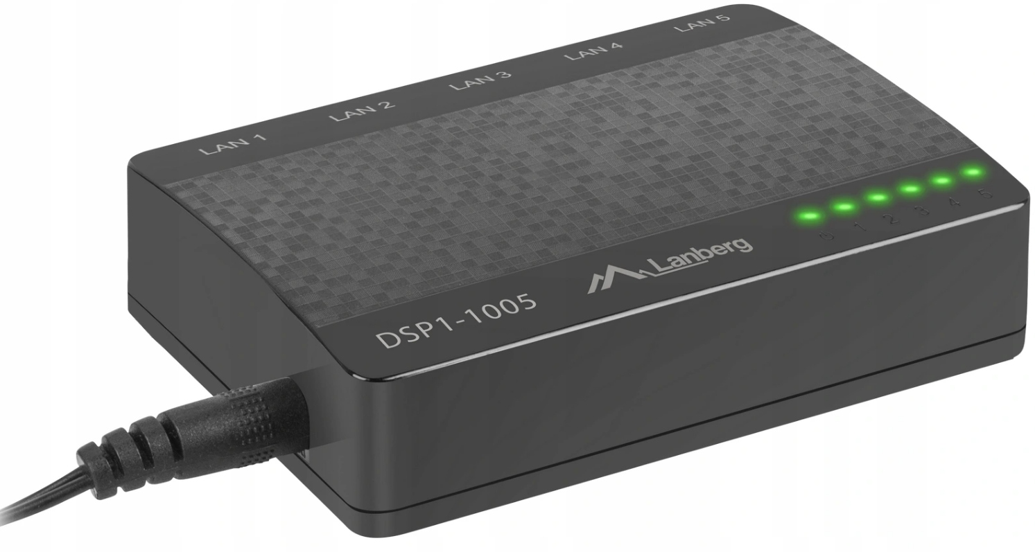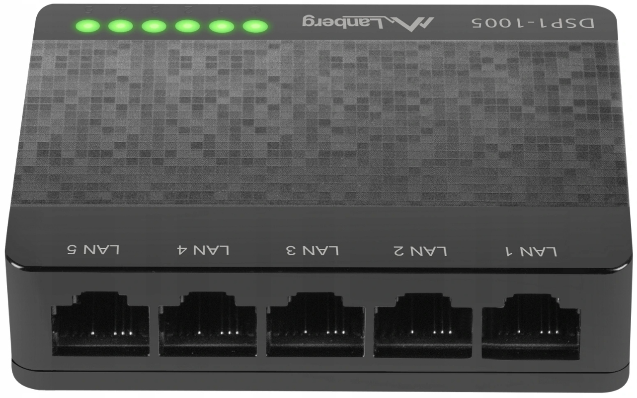 Lanberg DSP1-1005 — це невеликий некерований настільний комутатор, обладнаний 5 портами Gigabit Ethernet. Пристрій невеликий і зручний, працює за принципом Plug & Play. Комутатор підтримує функції комутації для 5 портів RJ-45 10/100/1000 Мбіт/с із автоматичним узгодженням підключення та підтримкою MDI-MDIX.