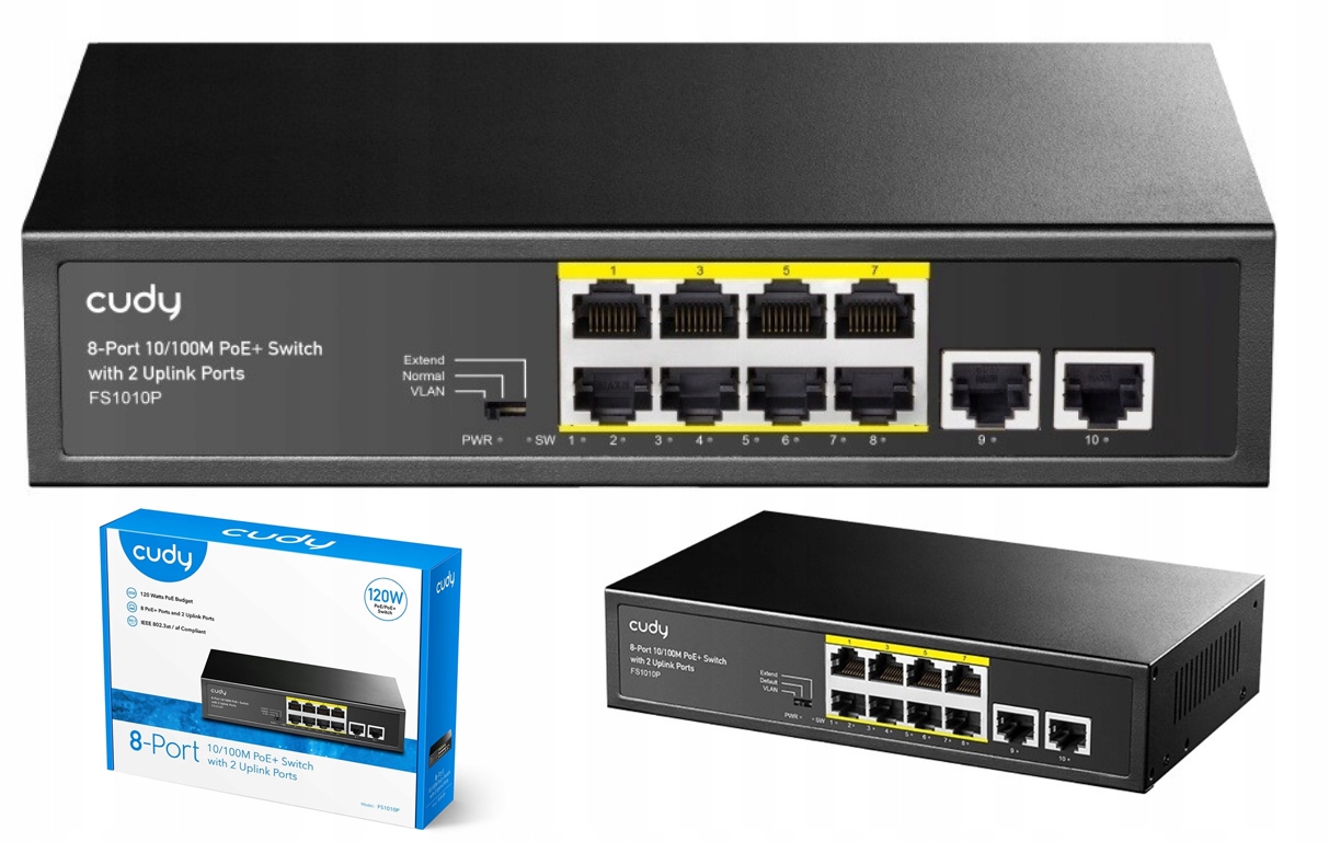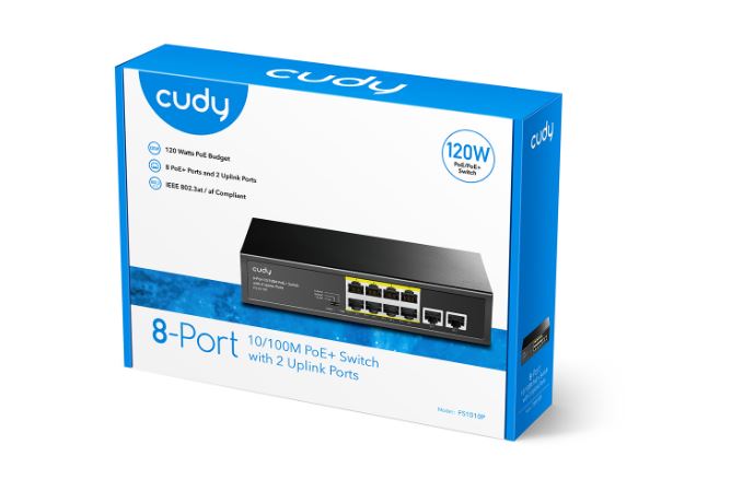 Комутатор 8x PoE для камер PoE 2x Ulonk 10/100Mbps CUDY FS1010P | PoE потужність 120W
