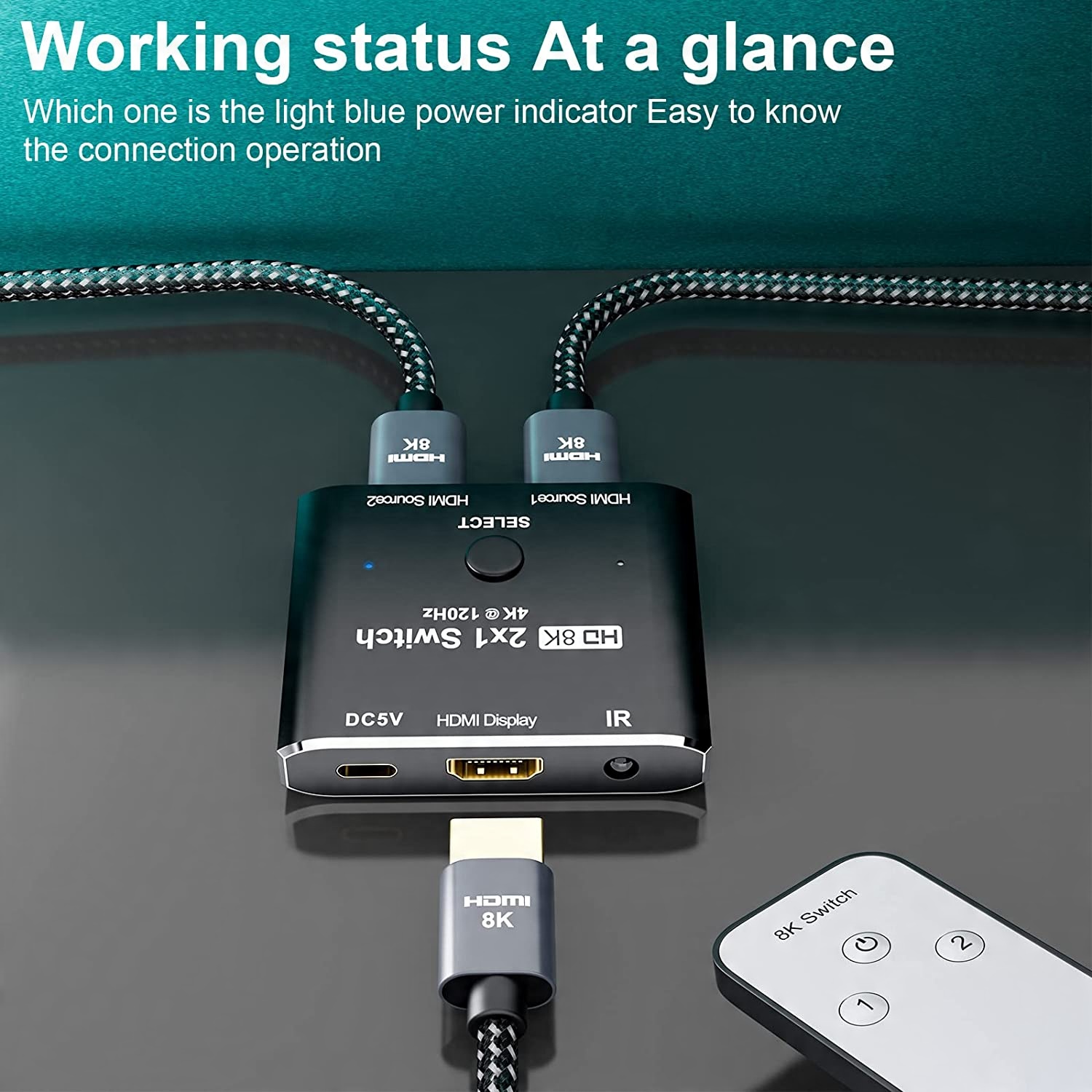 Комутатор HDMI 2.1 Switch 1x2 8K 60Hz 4K 120Hz