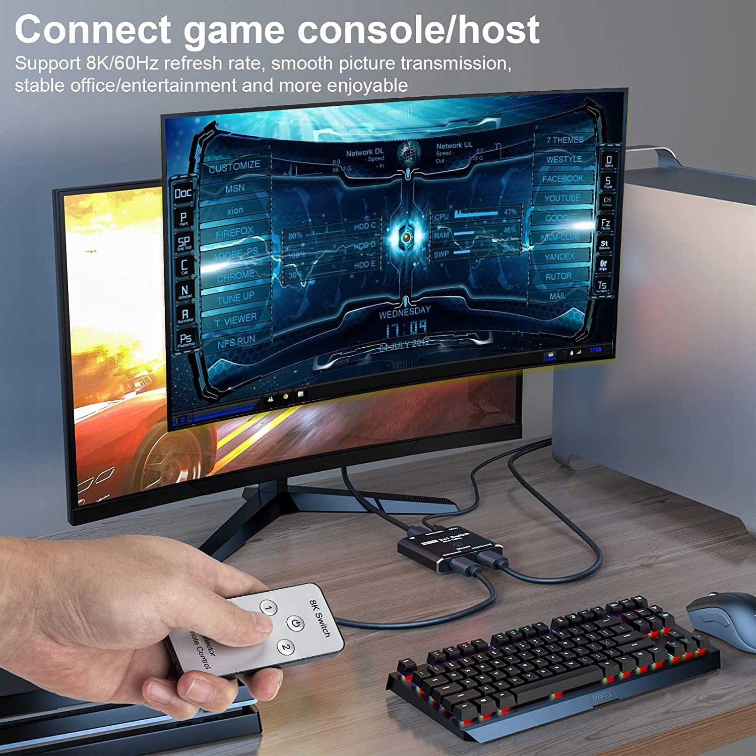 Якщо ви хочете отримати 8K@60Hz, 4K@120Hz та 1080P @240 Гц через цей розгалужувач на ваших дисплеях, переконайтеся, що ваші вихідні пристрої, ваш кабель і монітори підтримують потрібну роздільну здатність і частоту оновлення.