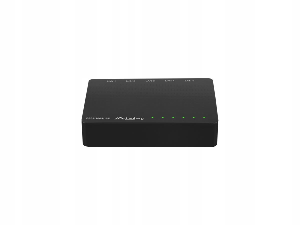 Lanberg DSP2-1005-12V — це невеликий некерований настільний комутатор, оснащений 5 портами Gigabit Ethernet. Пристрій невеликий і зручний, працює за принципом Plug & Play. Комутатор підтримує функції комутації для 5 портів RJ-45 10/100/1000 Мбіт/с із автоматичним узгодженням підключення та підтримкою MDI-MDIX.