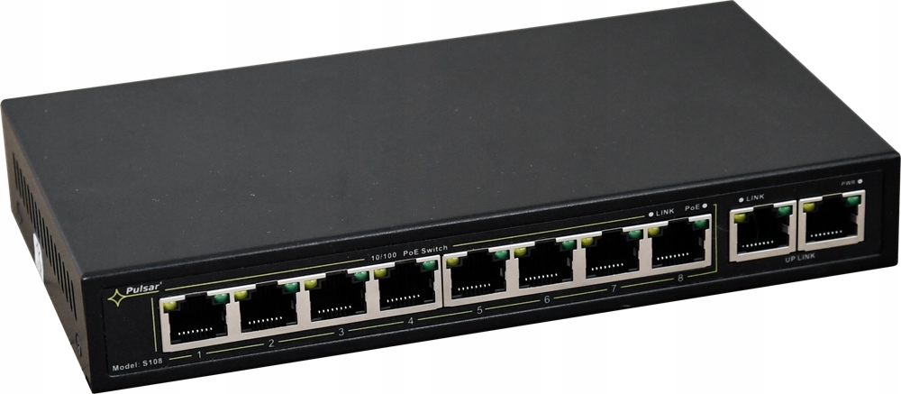 PoE комутатор Pulsar S108-90W - 10 портів, 8 портів PoE 802.3af, 2 порти Uplink